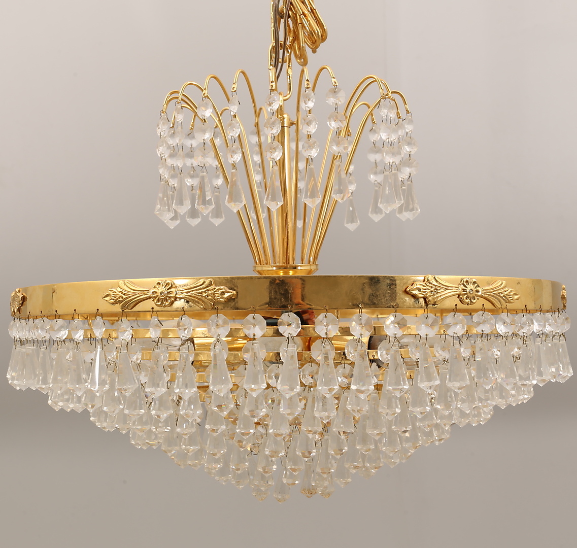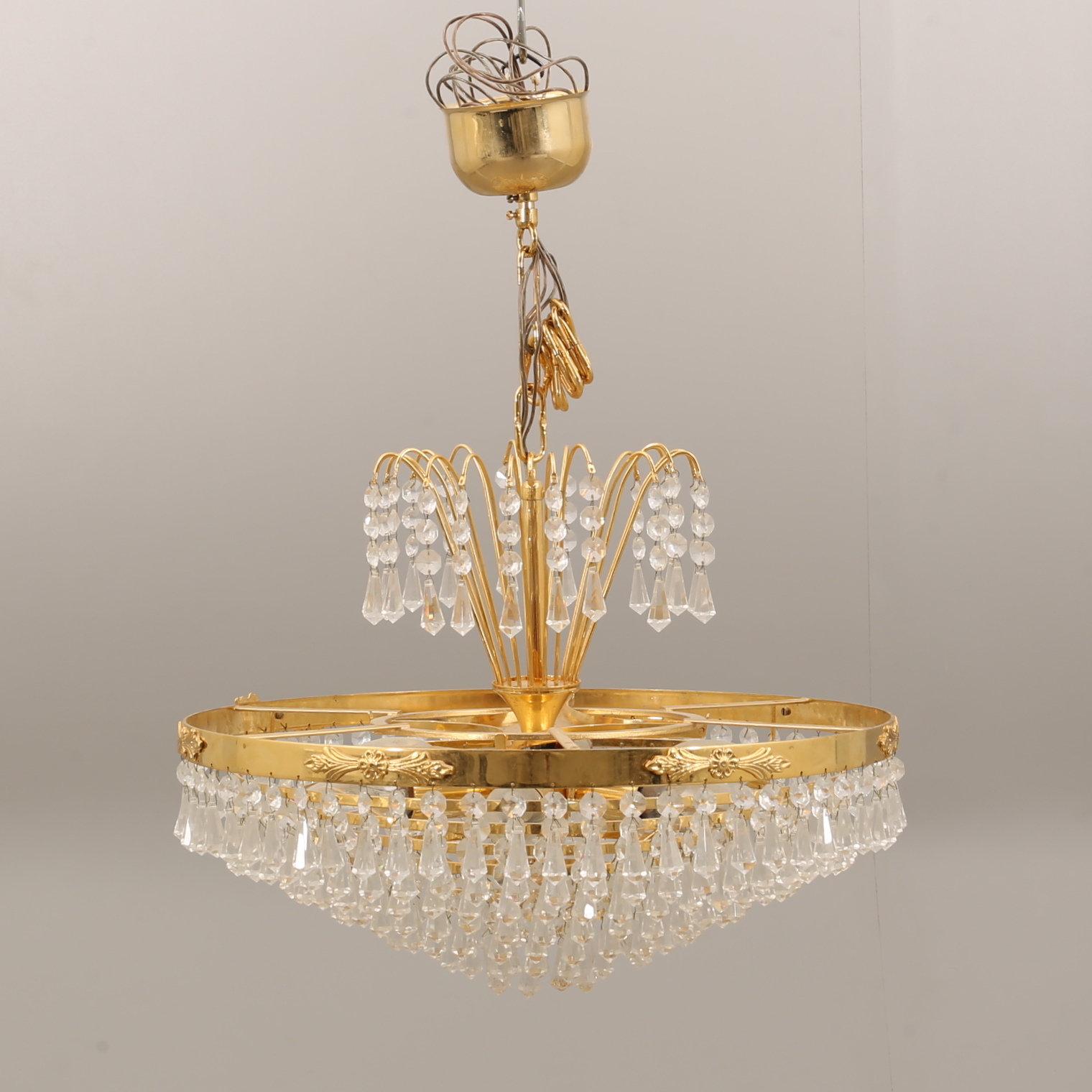 365596. Krystal lysekrone, 6 lyspunkter, 20. århundrede.