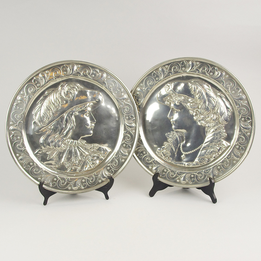 366244. VÆGPLADER, 1 par, tin, 1900-tallet.