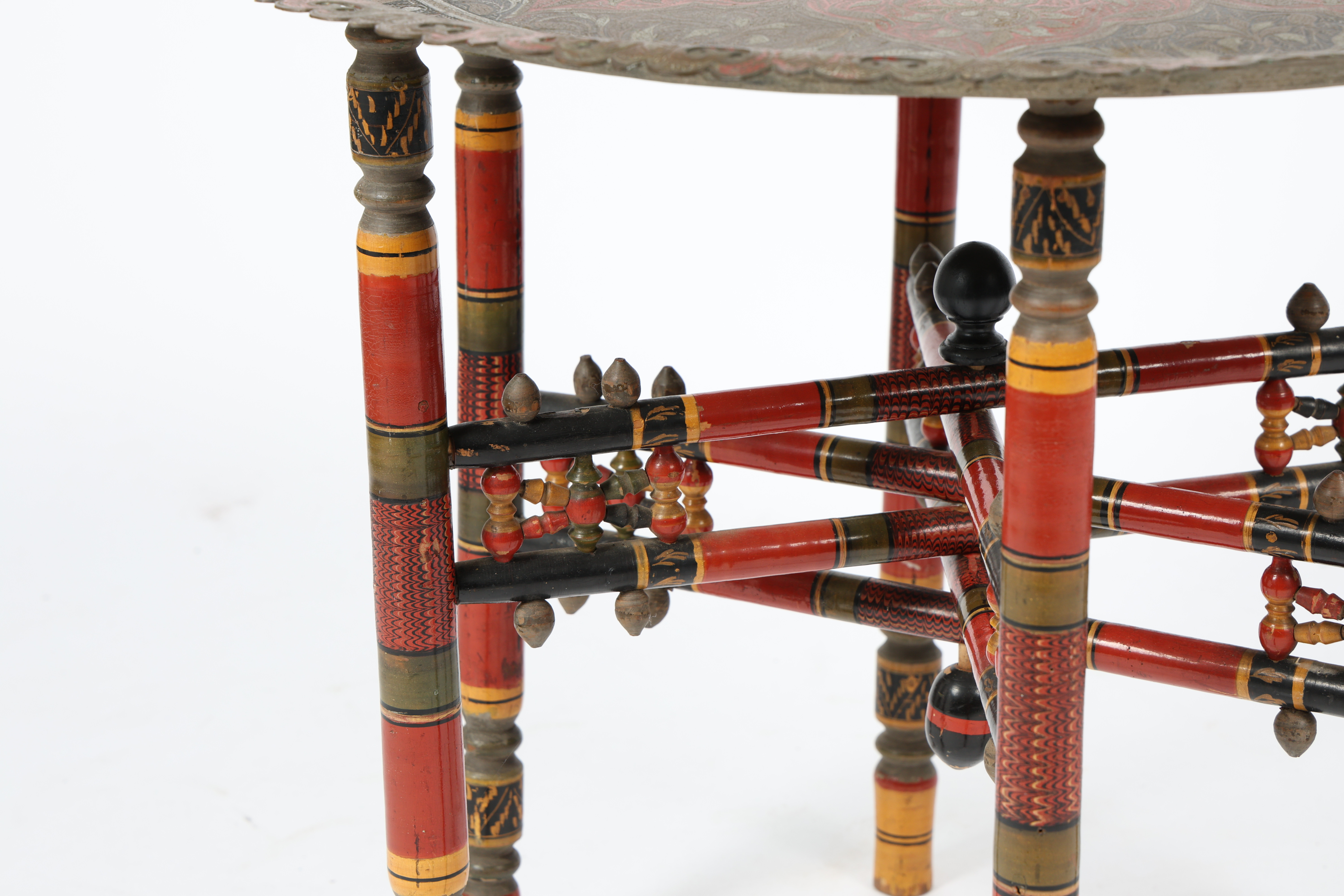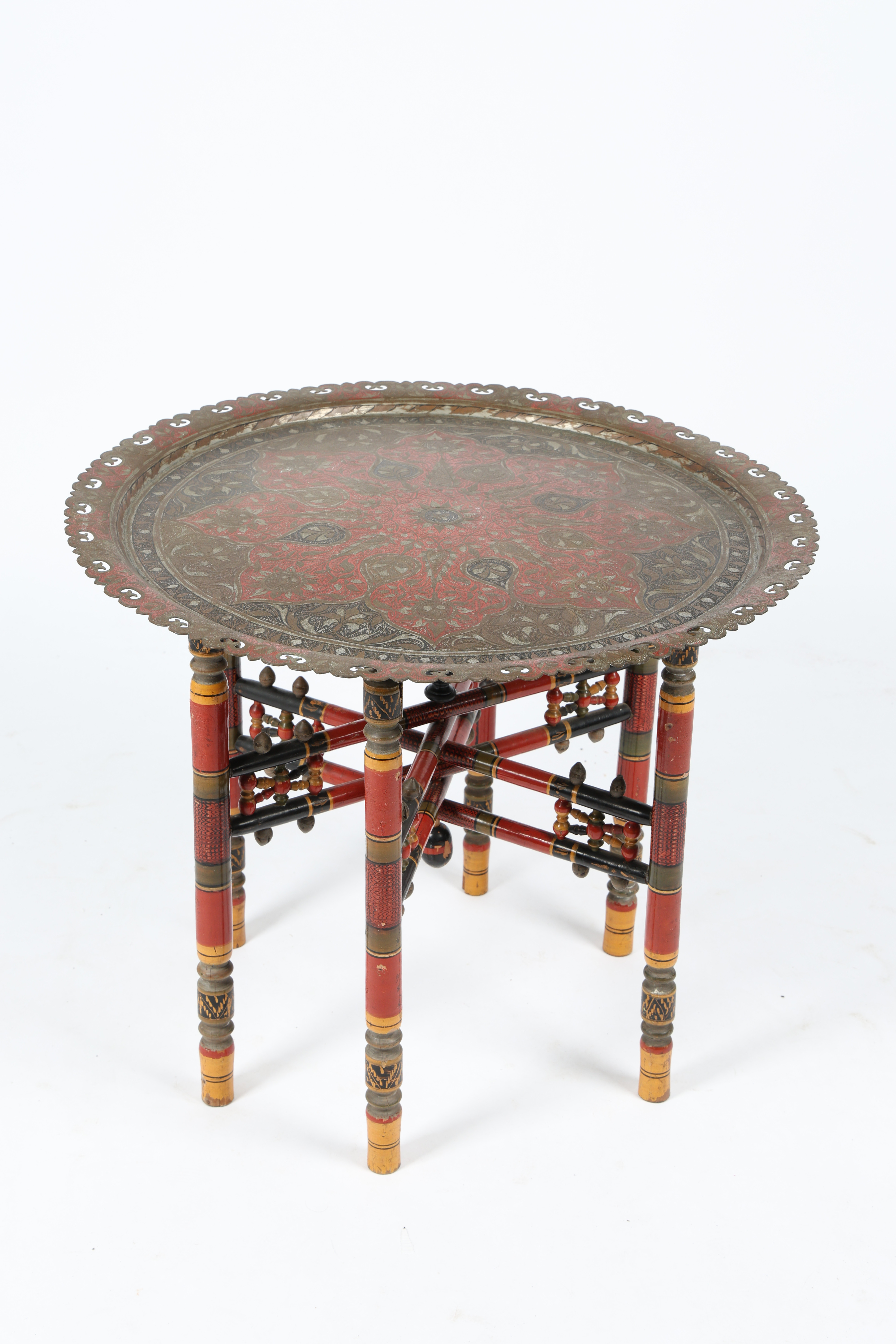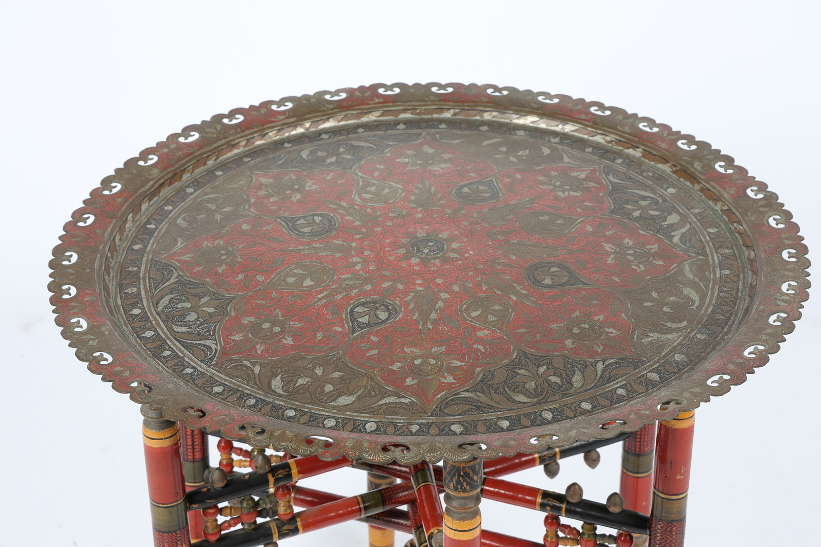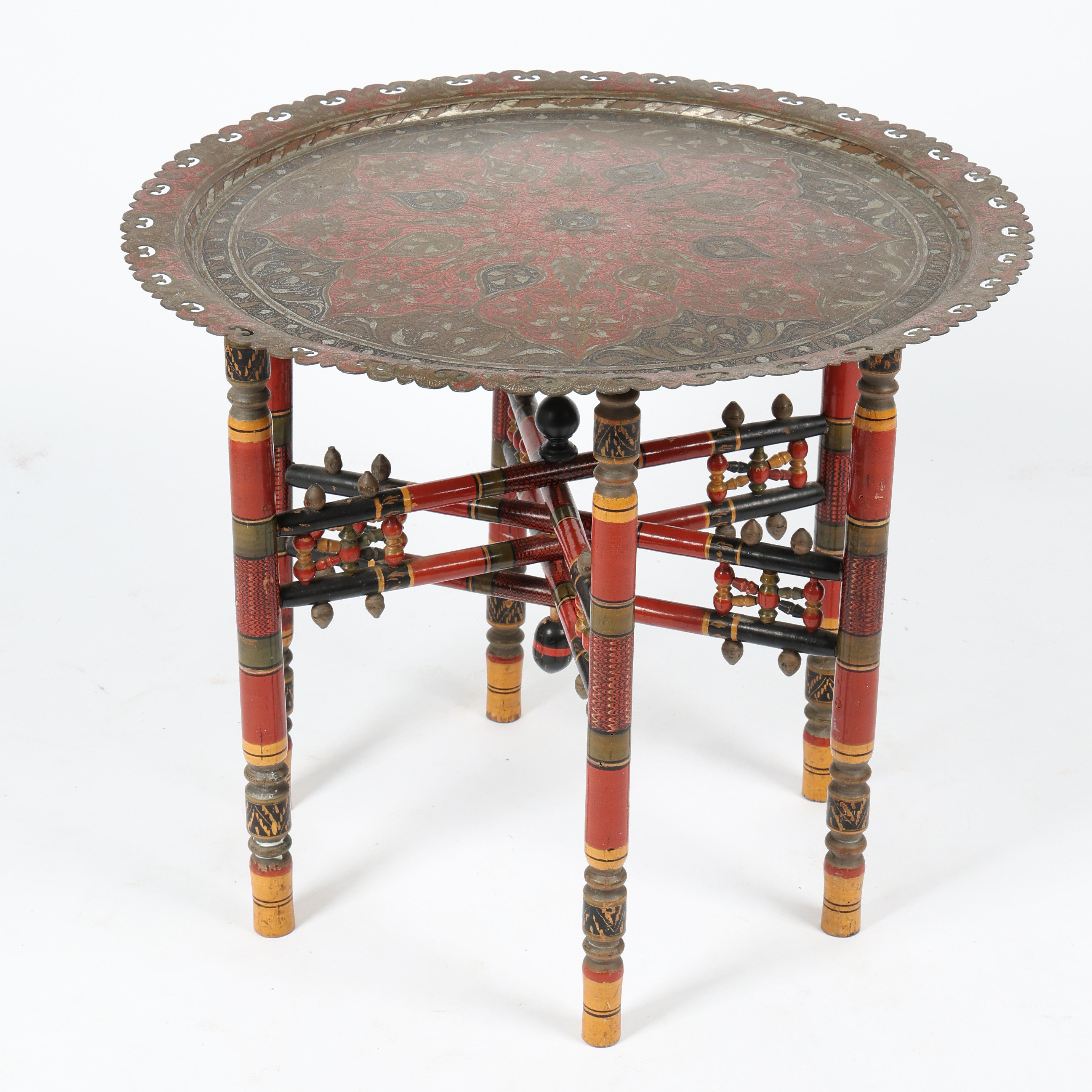 3663937. ET INDISK EMALJERET MESSING BENARES BORD.