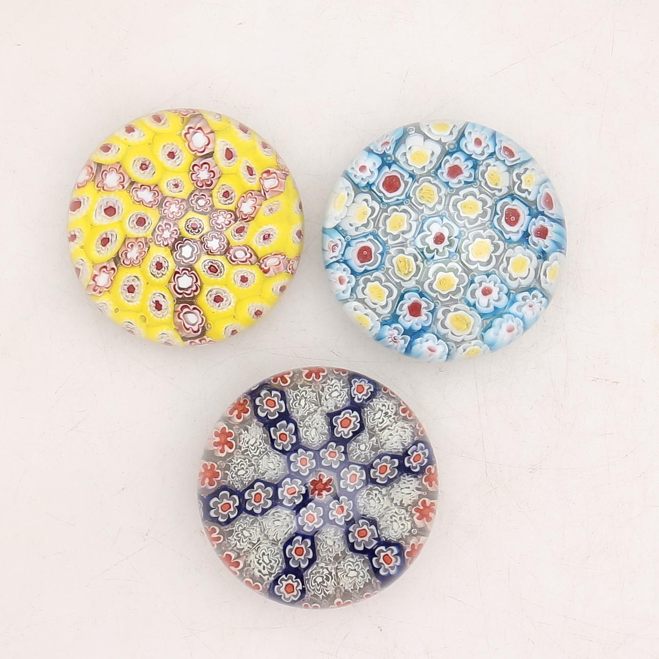 3667966. Tre dekorative glaskugler dekoreret med „millefiori“.