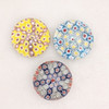 Tre dekorative glaskugler dekoreret med „millefiori“.