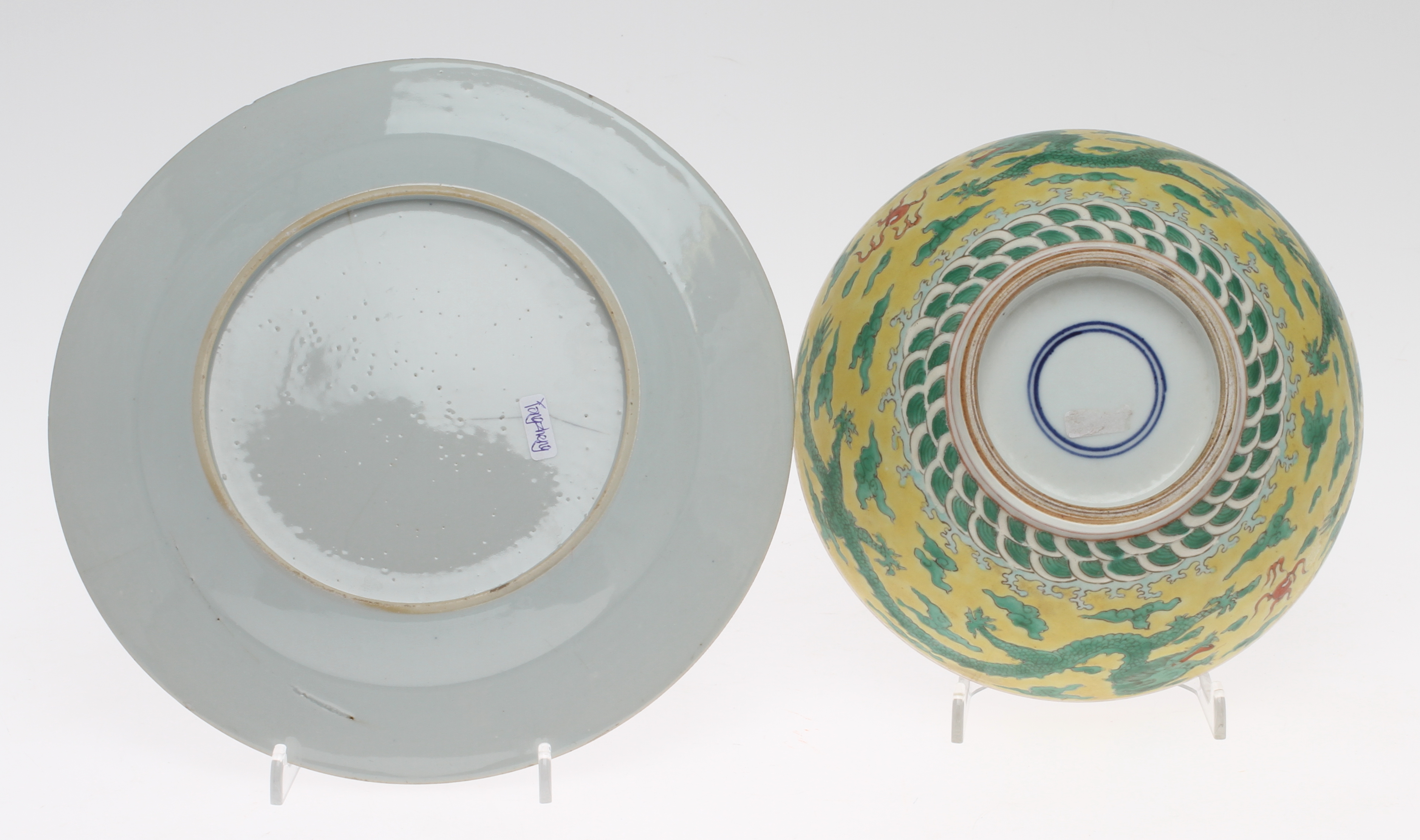 36682. SKÅL OG PLADE, porcelæn, Kina.