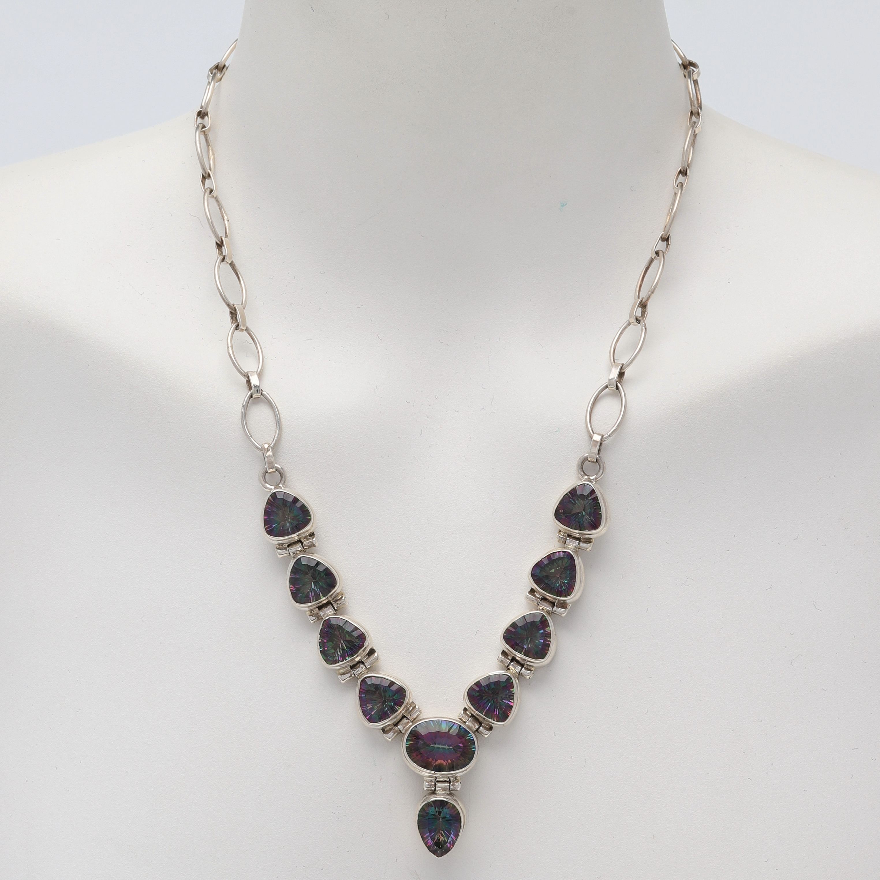 3668754. HALSKÆDE, sølv med mystisk topas.