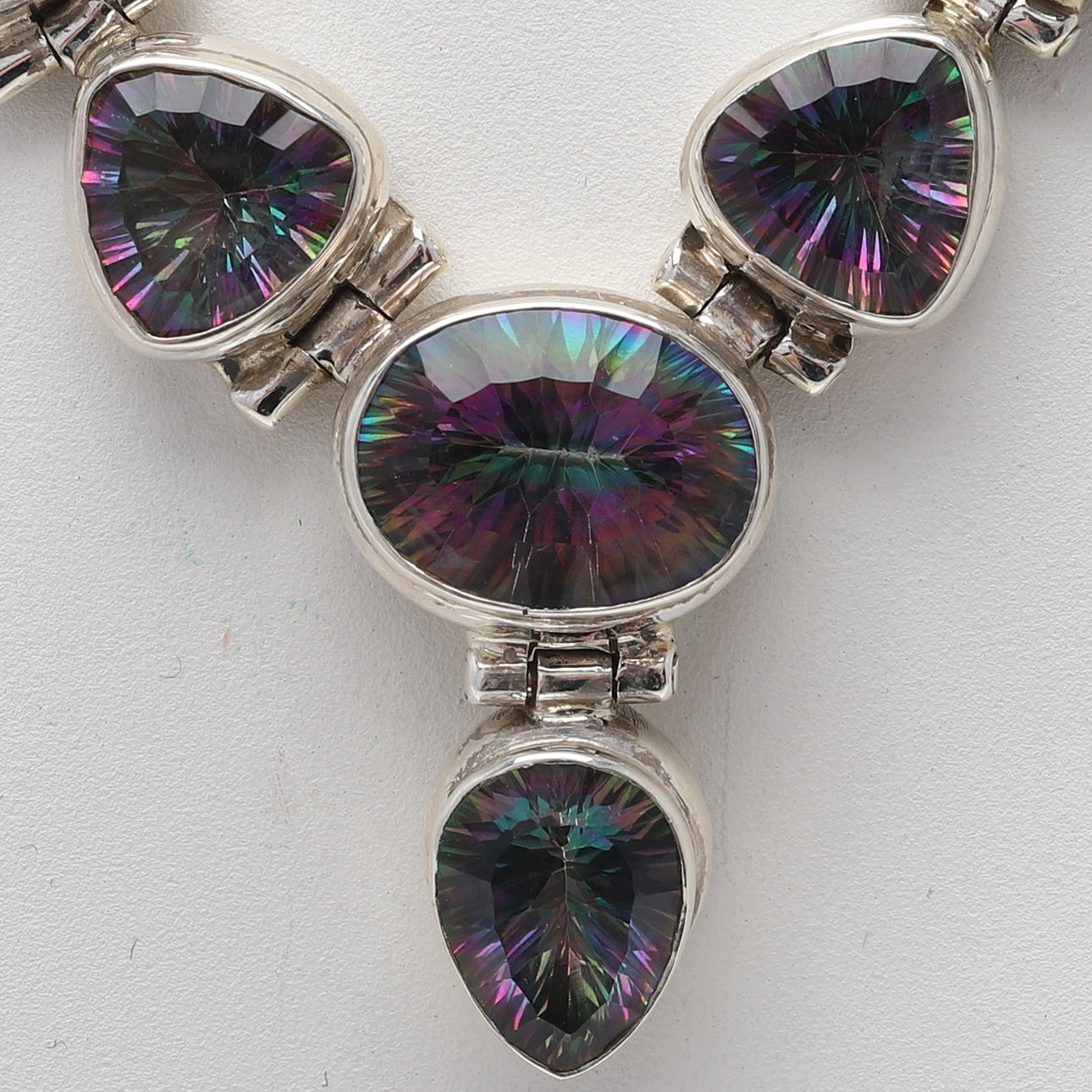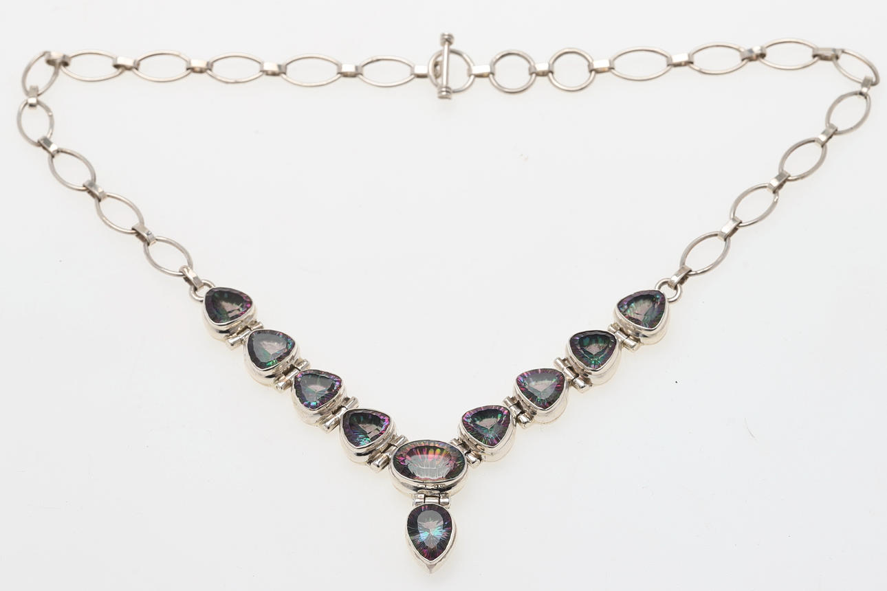 3668754. HALSKÆDE, sølv med mystisk topas.