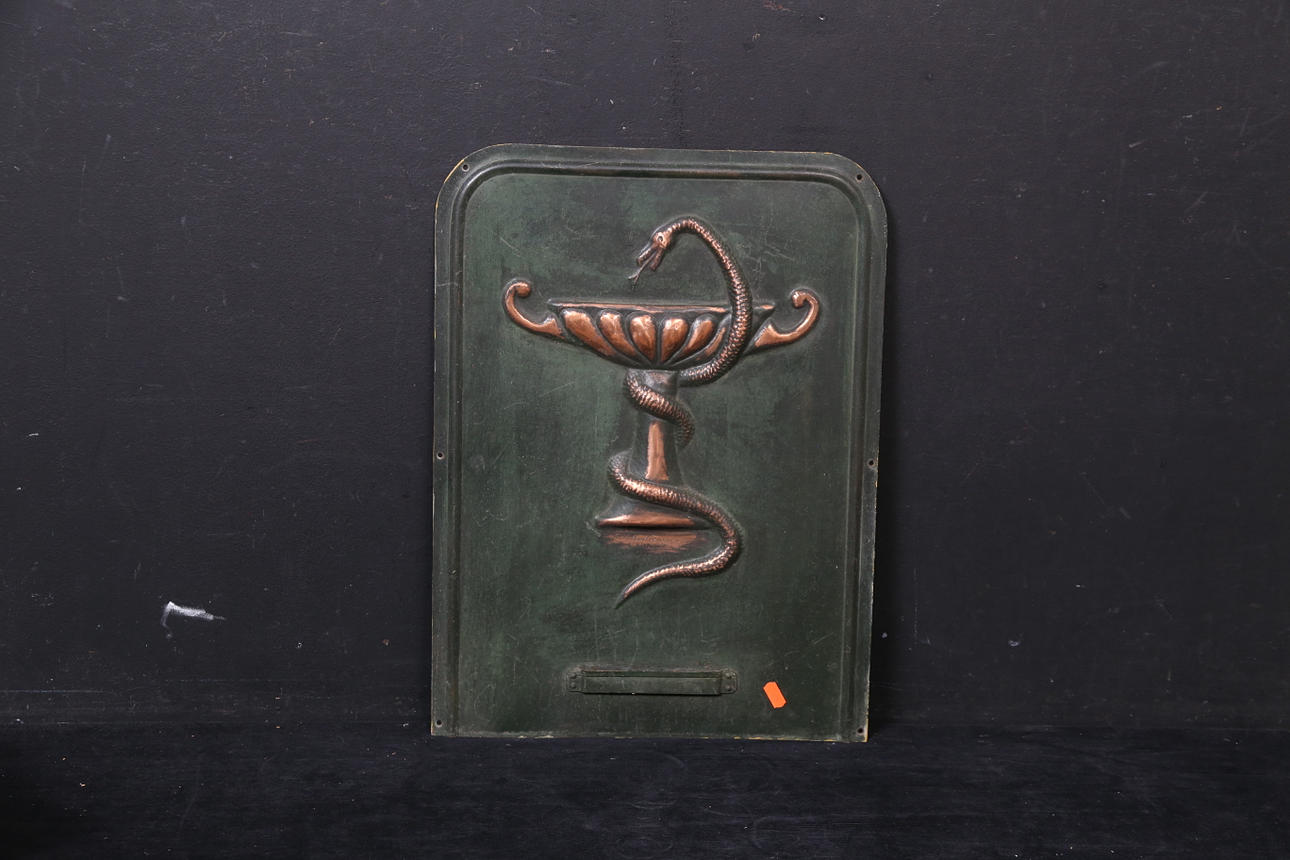 3670884. VÆGFONTÆNE, patineret kobberplade, CH Andreasson.
