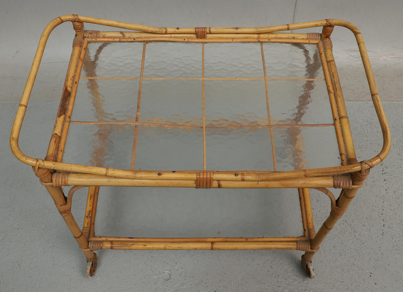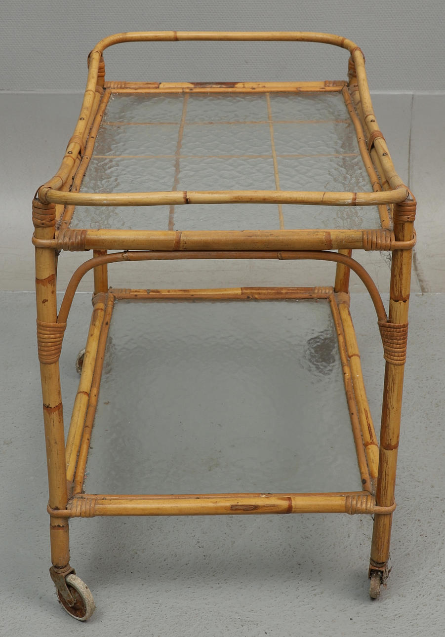 3671099. SERVERINGSVOGN, bambus, to glasplader på hjul.