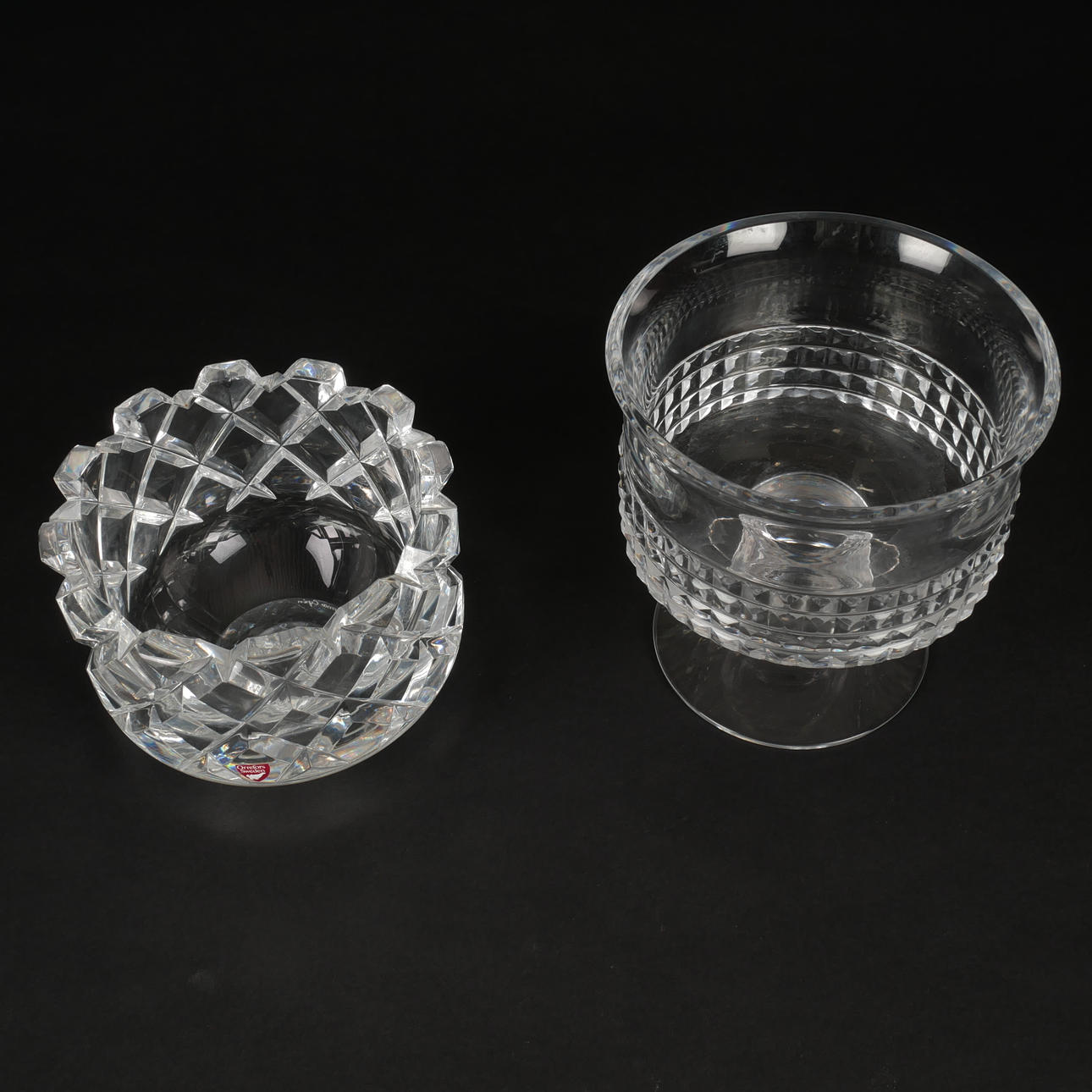 Skål „Sofiero“ Gunnar Cyrén signeret. Diameter 15 cm. Skål på fod signeret „Boda“, højde 16 cm.