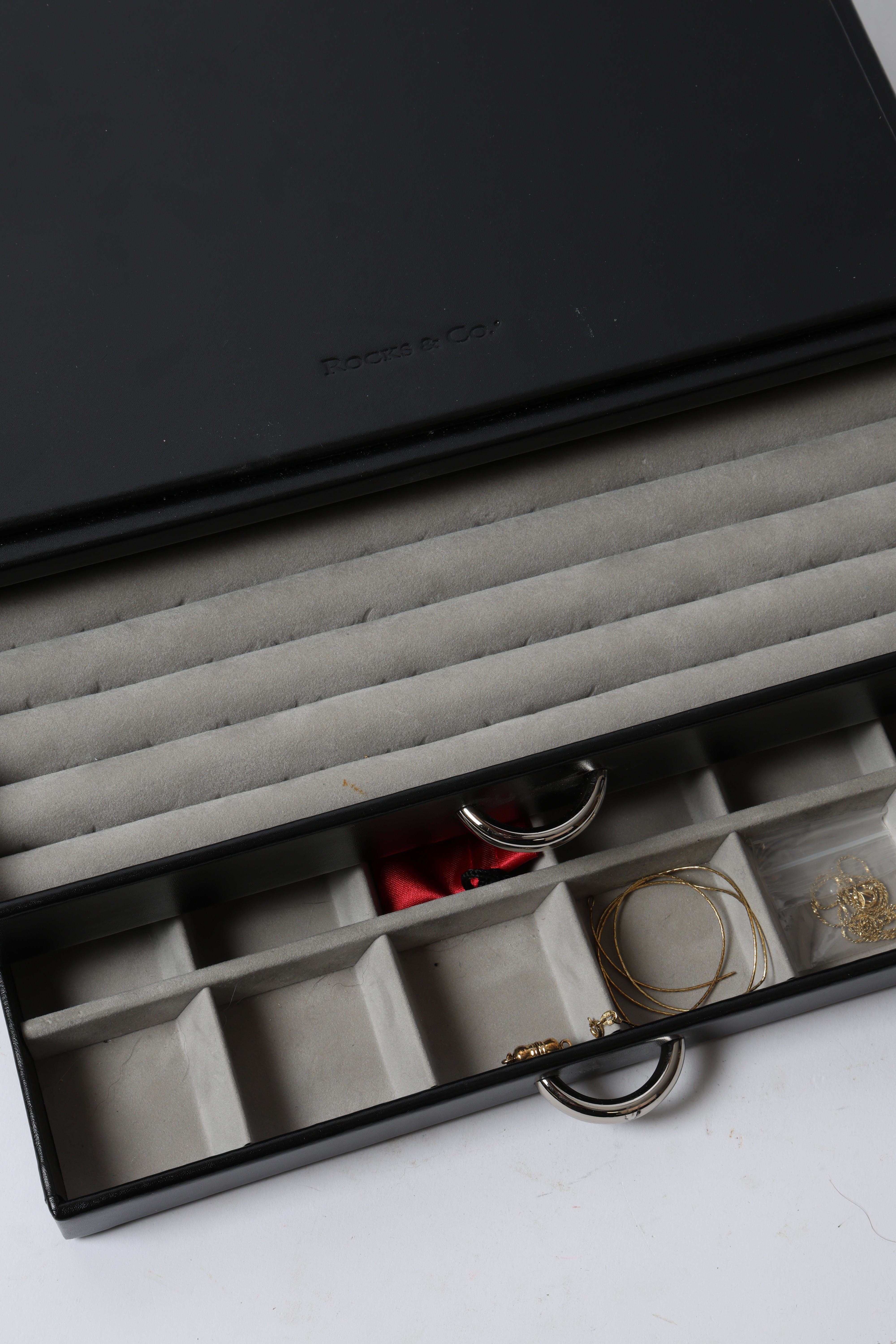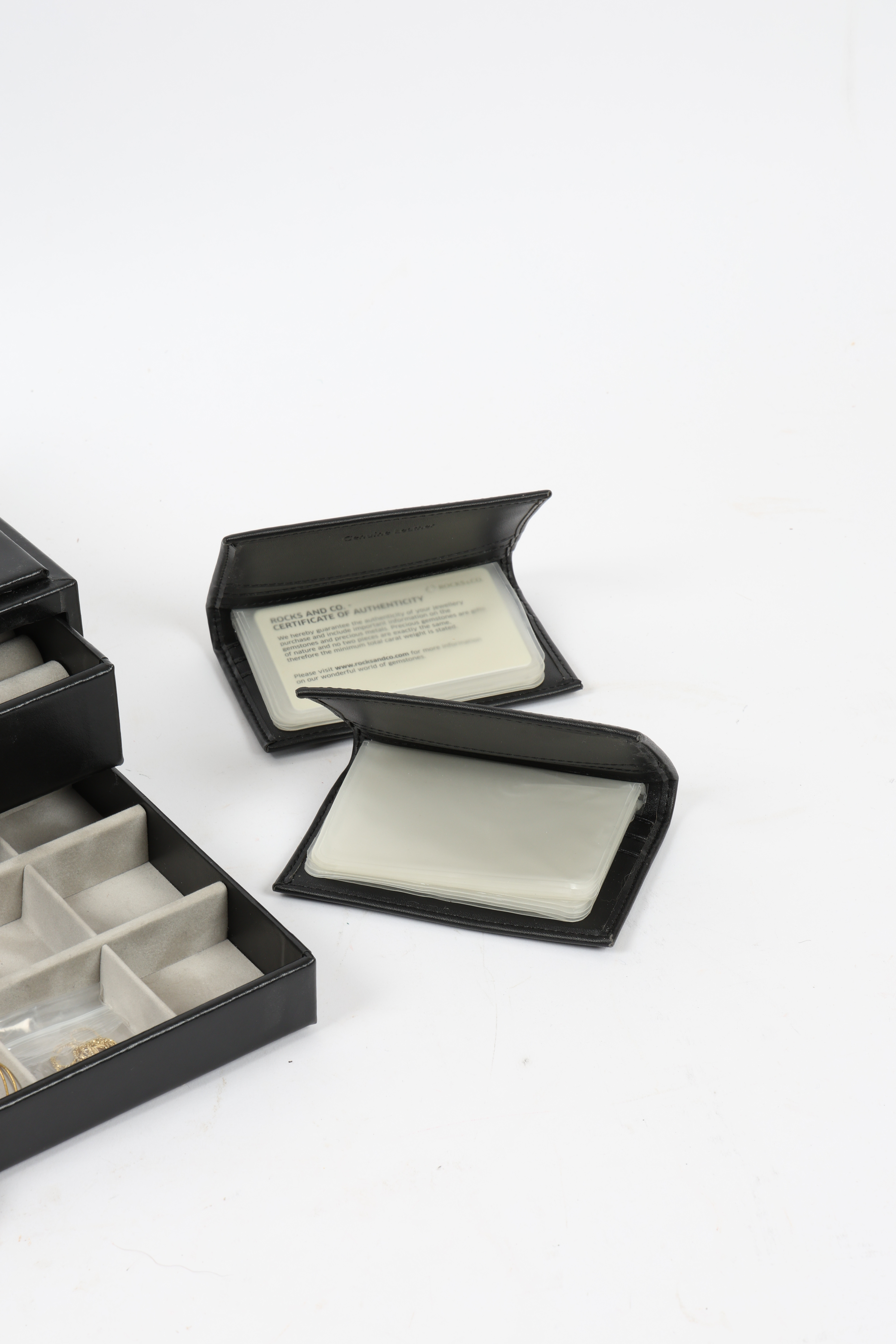 3674101. LÆDER SMYKKESKRIN OG TILBEHØR.