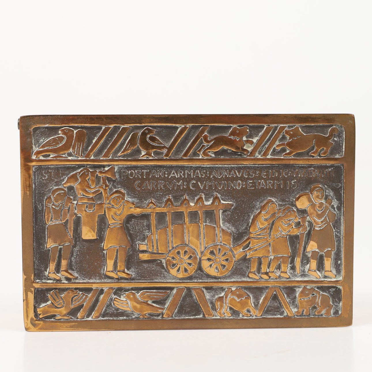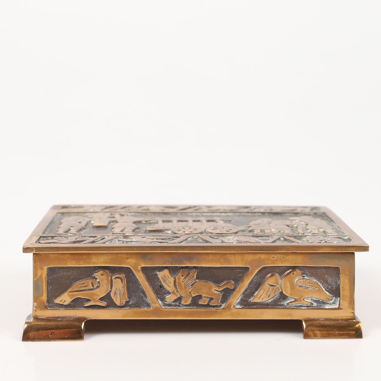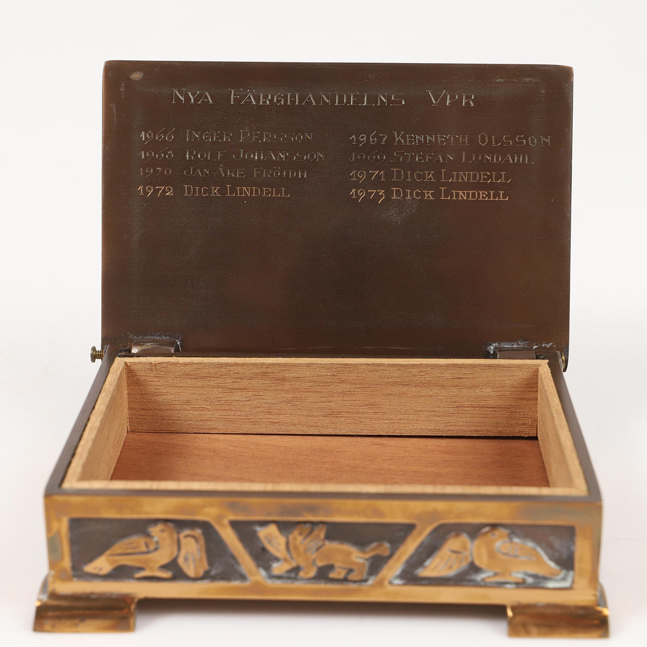 Ca. 15 x 10, højde 4,5 cm Vandringspris Farghandelns vandrepris, med indskrift af vinderne, 1966-73, på indersiden af låget.