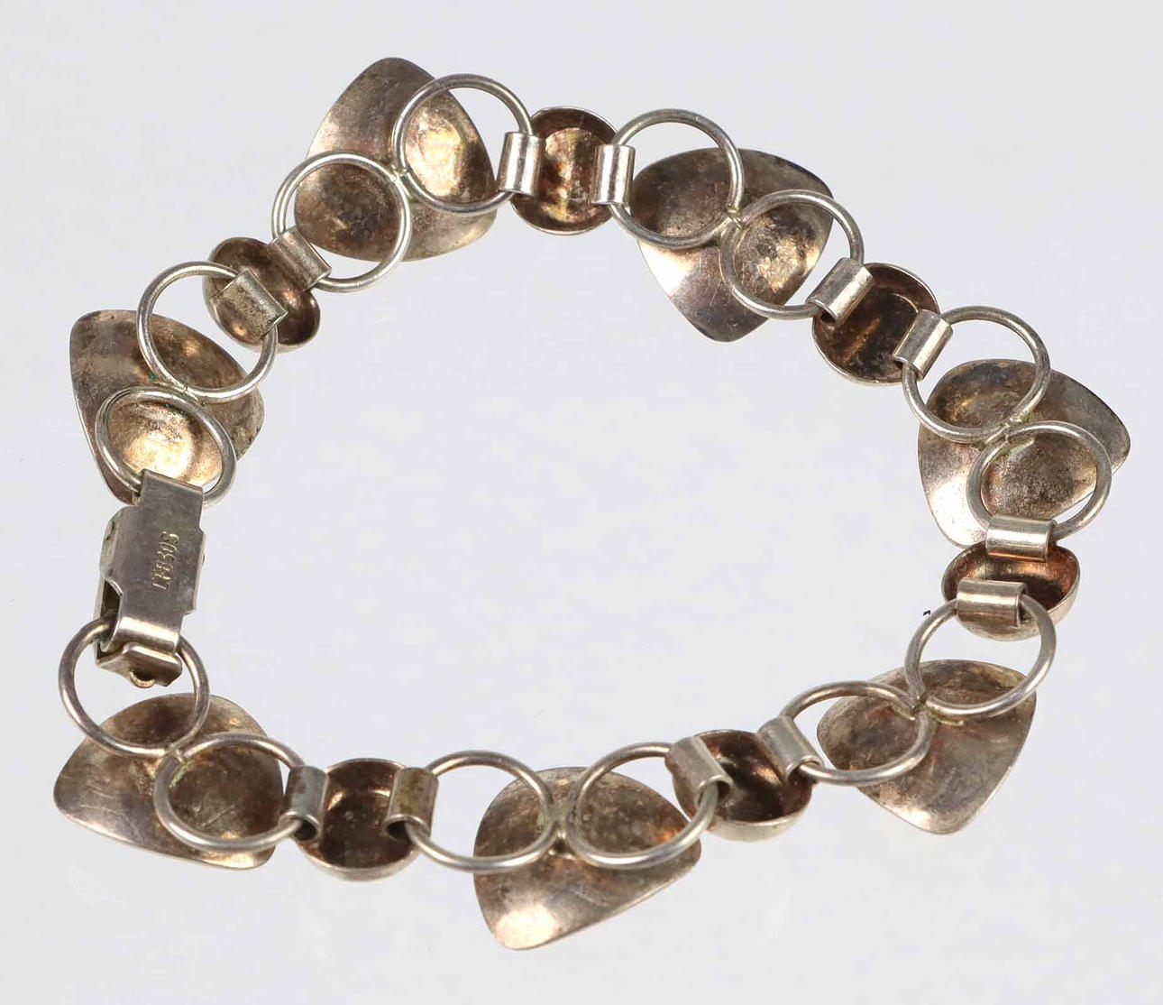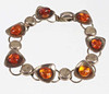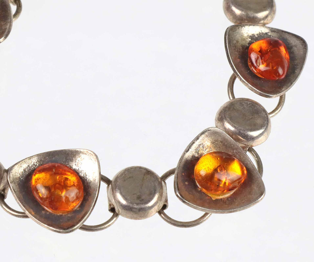 Amber armbånd lavet af 830 sølv også stemplet, samt fabrikantens mærke, længde 18 cm, bredde 15 mm, vægt 18,4 gram, 50/60s.