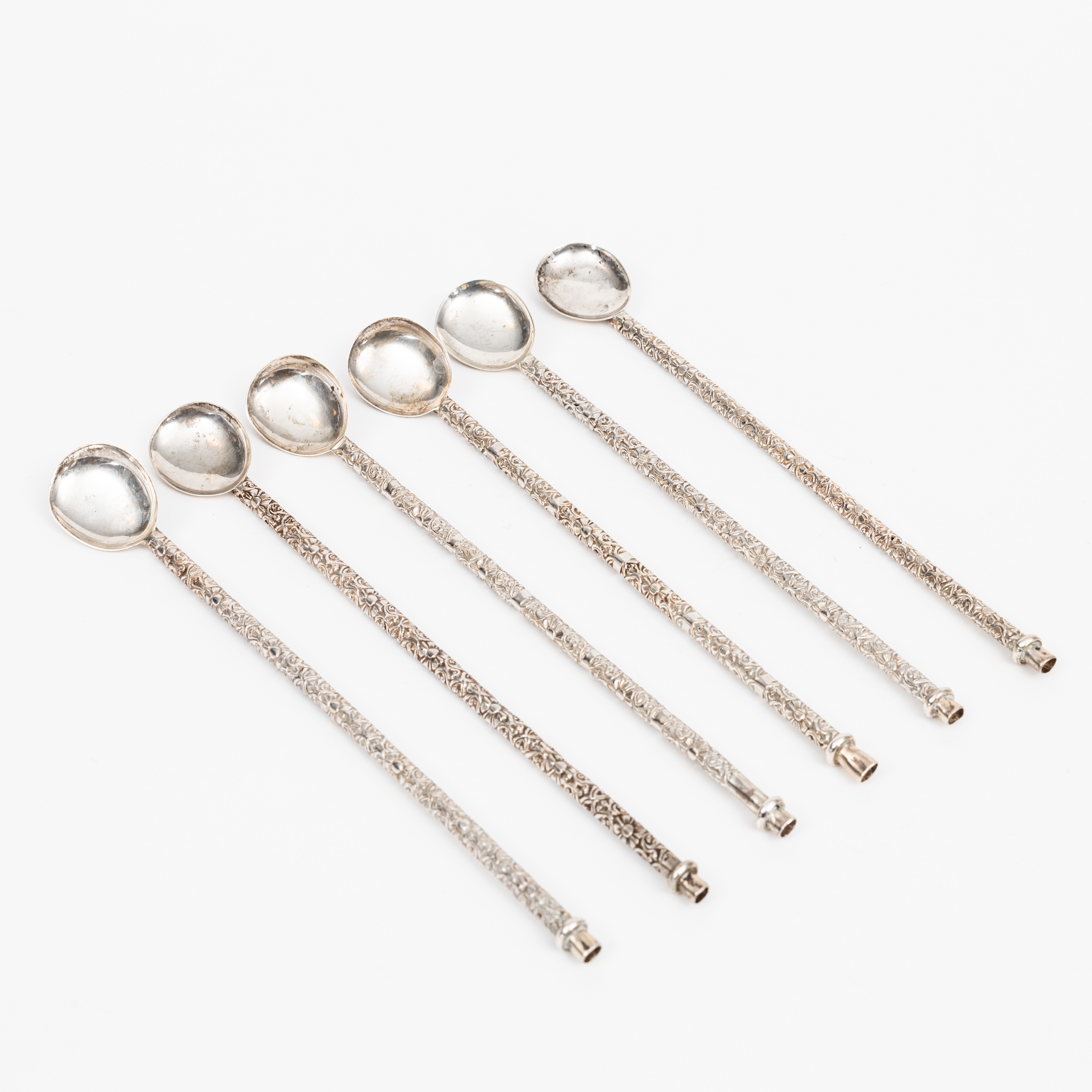 3683097. SKEER OG SUGERØR, 6 stk., sølv, Mexico, 20. årh.