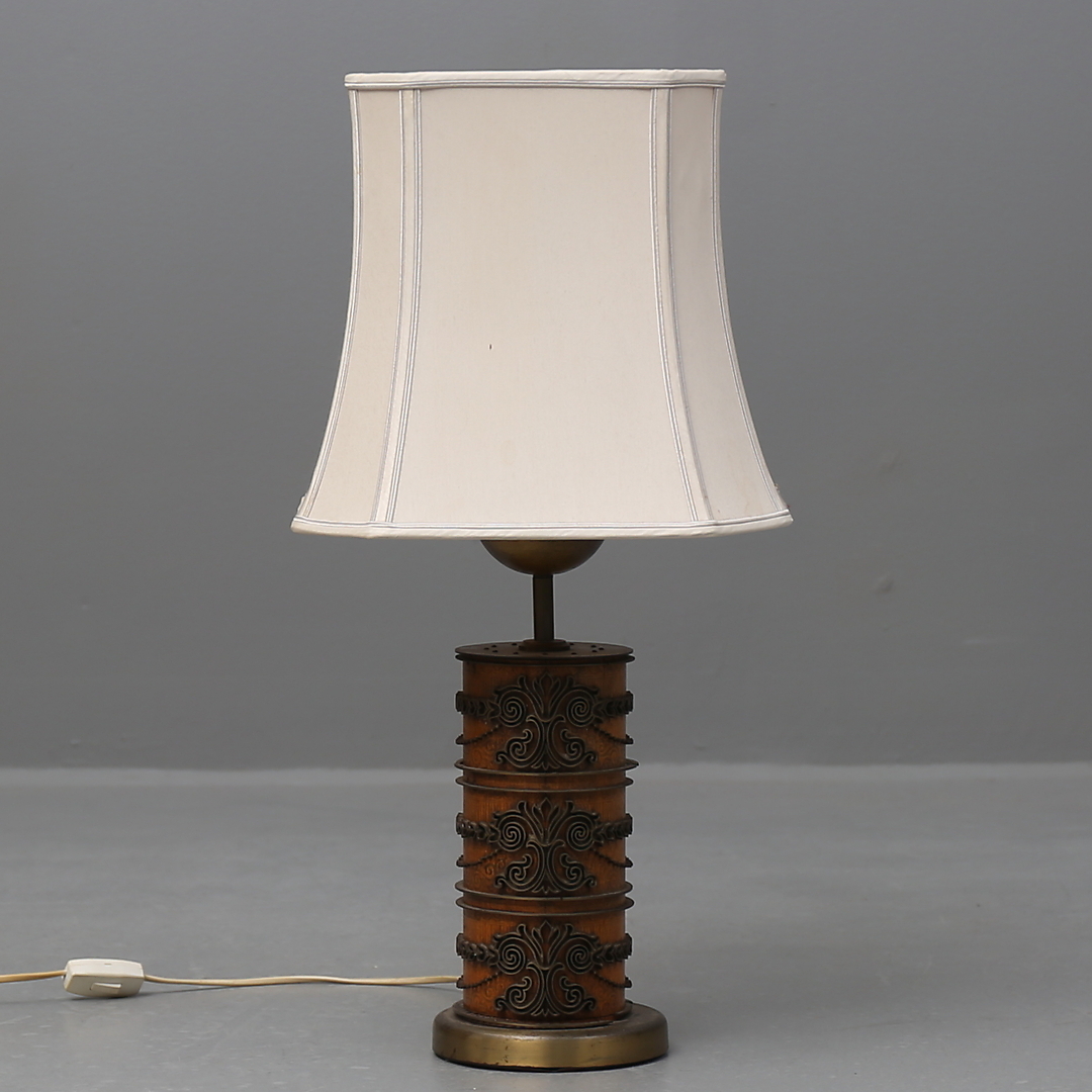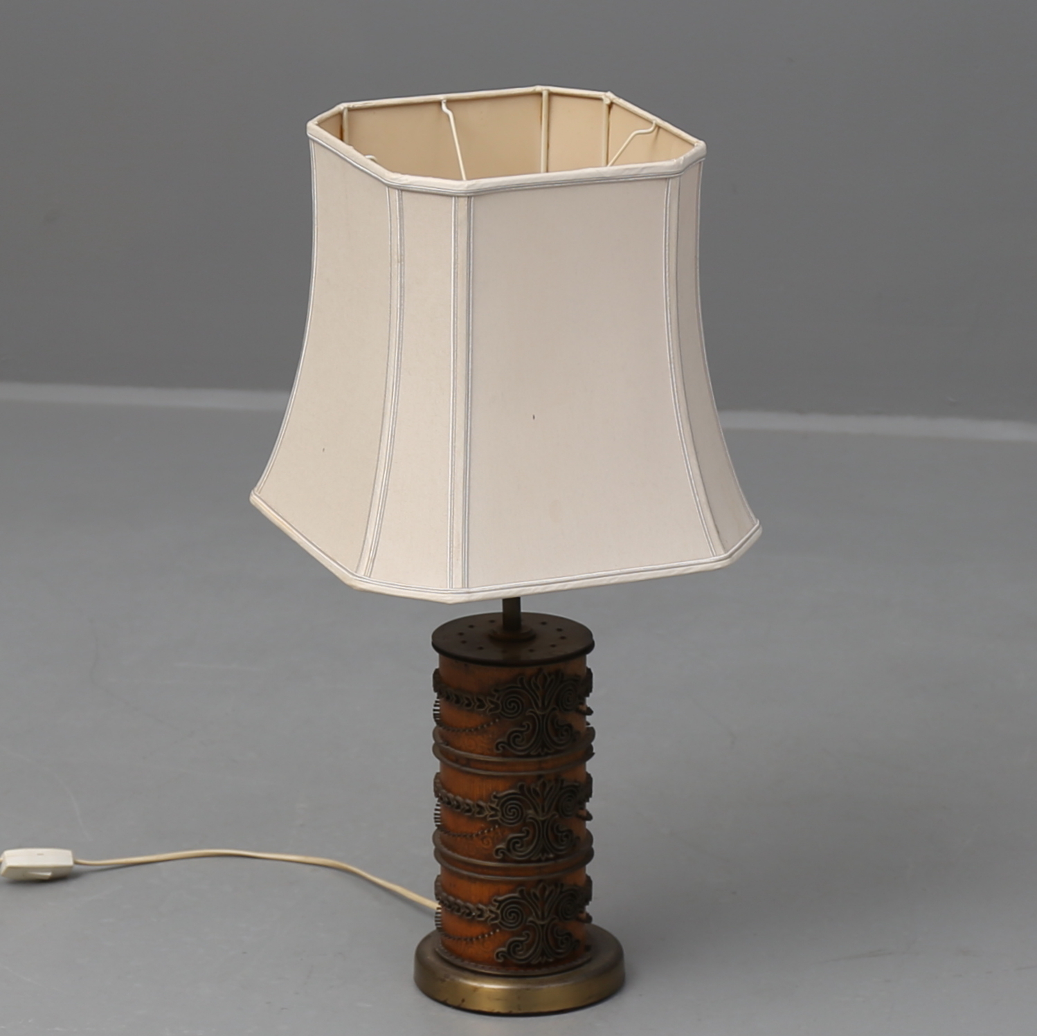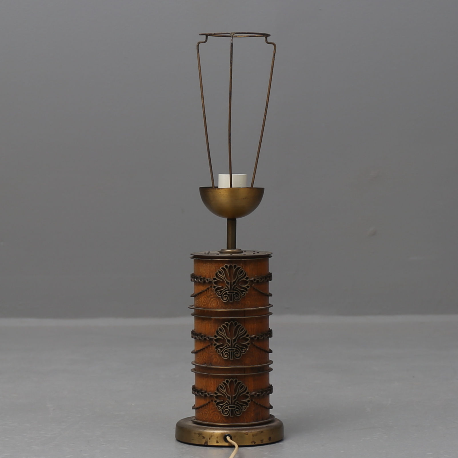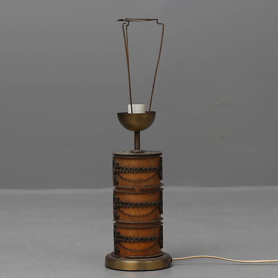 368382. LAMPEFODE lavet af tapetrulle, træ og messing.