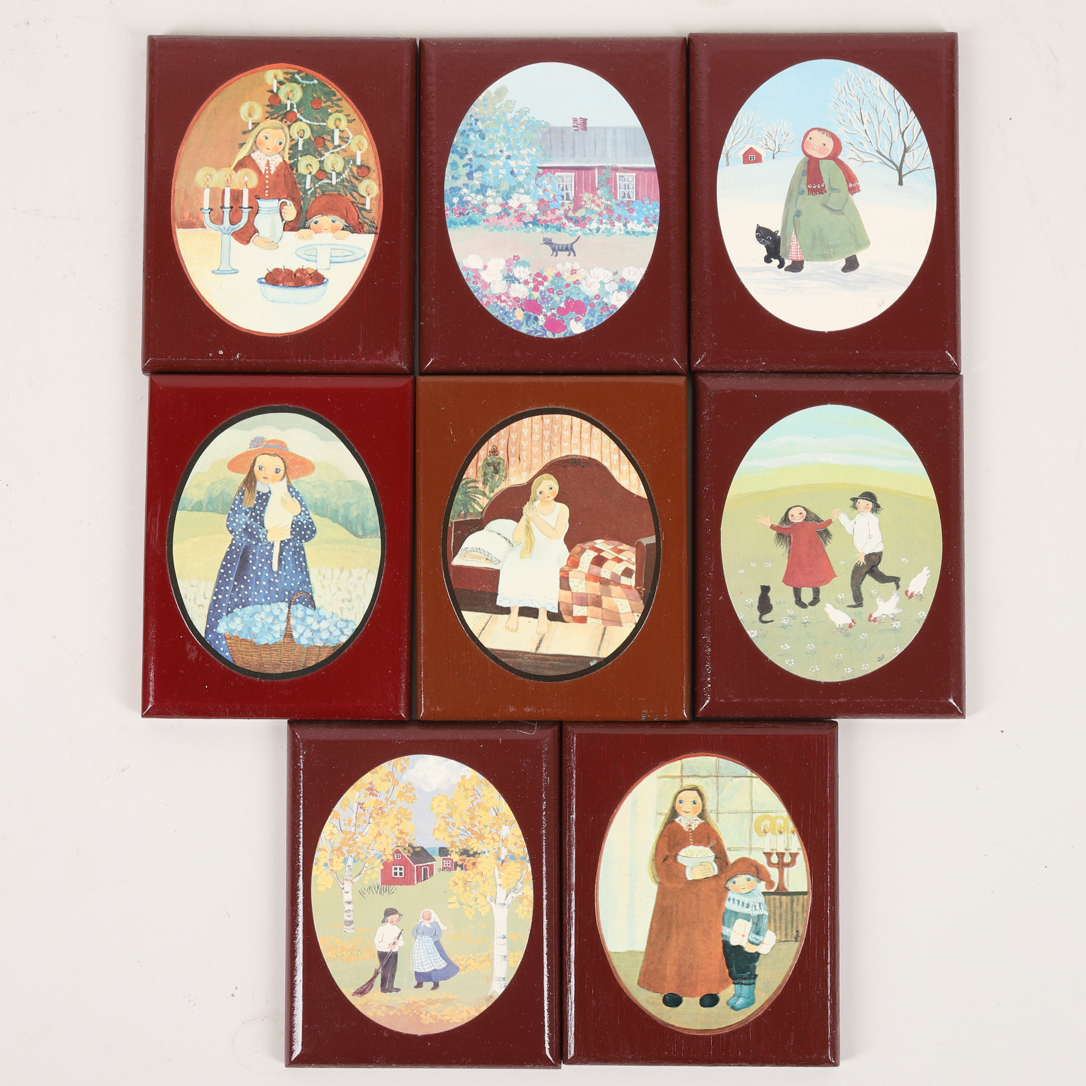 3684773. ASTA PULKKINEN. miniature malerier, 8 stk, tryk.