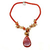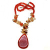 Prangende cornelian/carnelian perle halskæde med pæreformet vedhæng (6cm) & assorterede perler - 60cm lang.