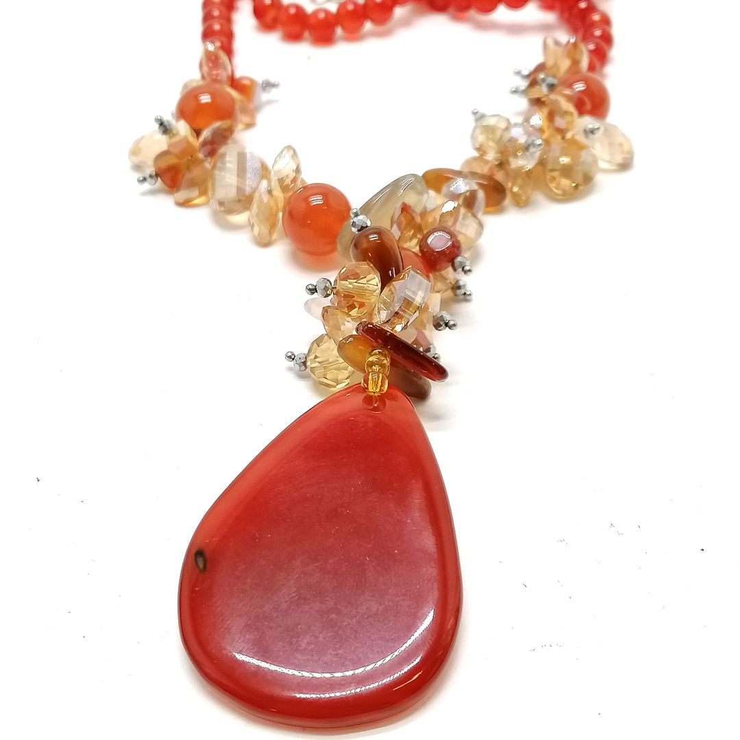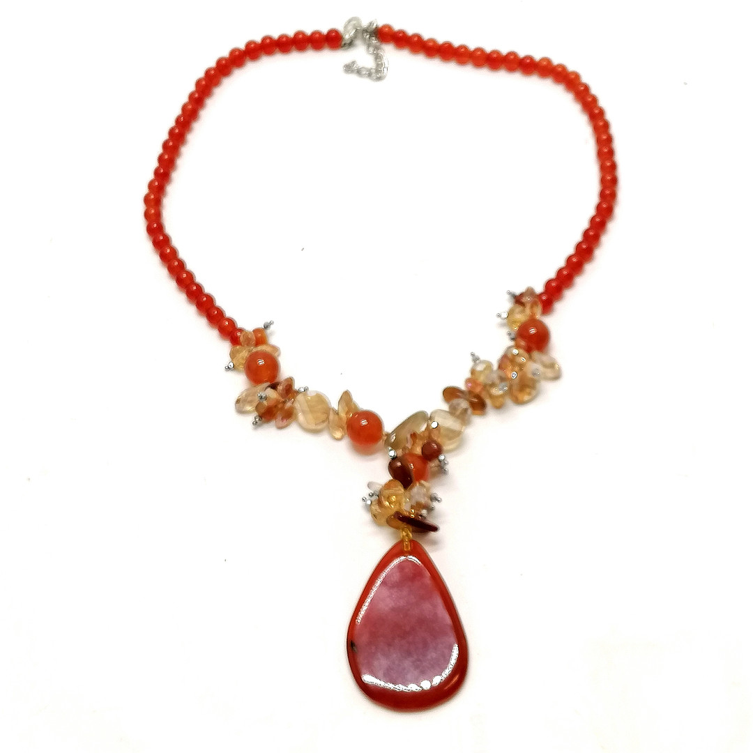 3685196. PRANGENDE CORNELIAN/CARNELIAN PERLE HALSKÆDE.