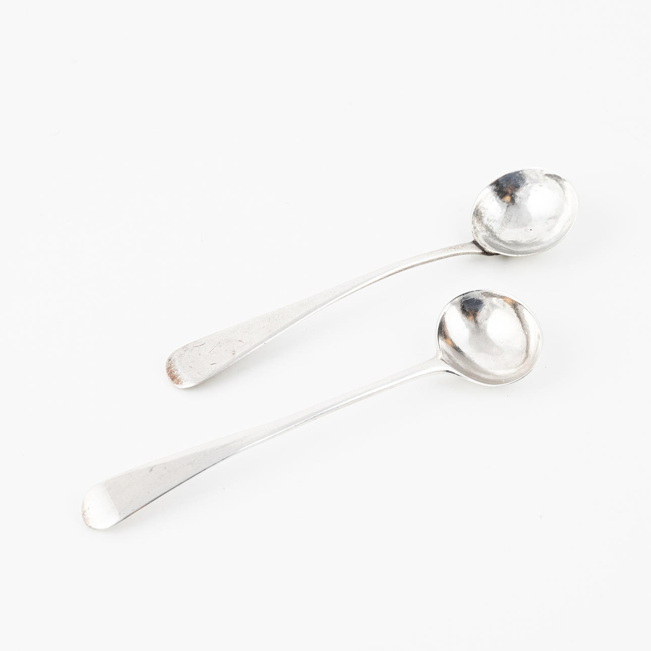 3685903. SALTSKÅLE, 2 stk., sølv, diverse mestre, England, 1700/19. årh.