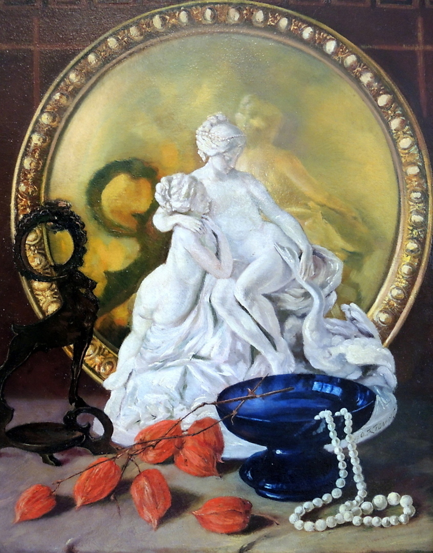 368634. OTTO KLÜBERT. MALERI, stilleben, "Leda med svanen".