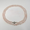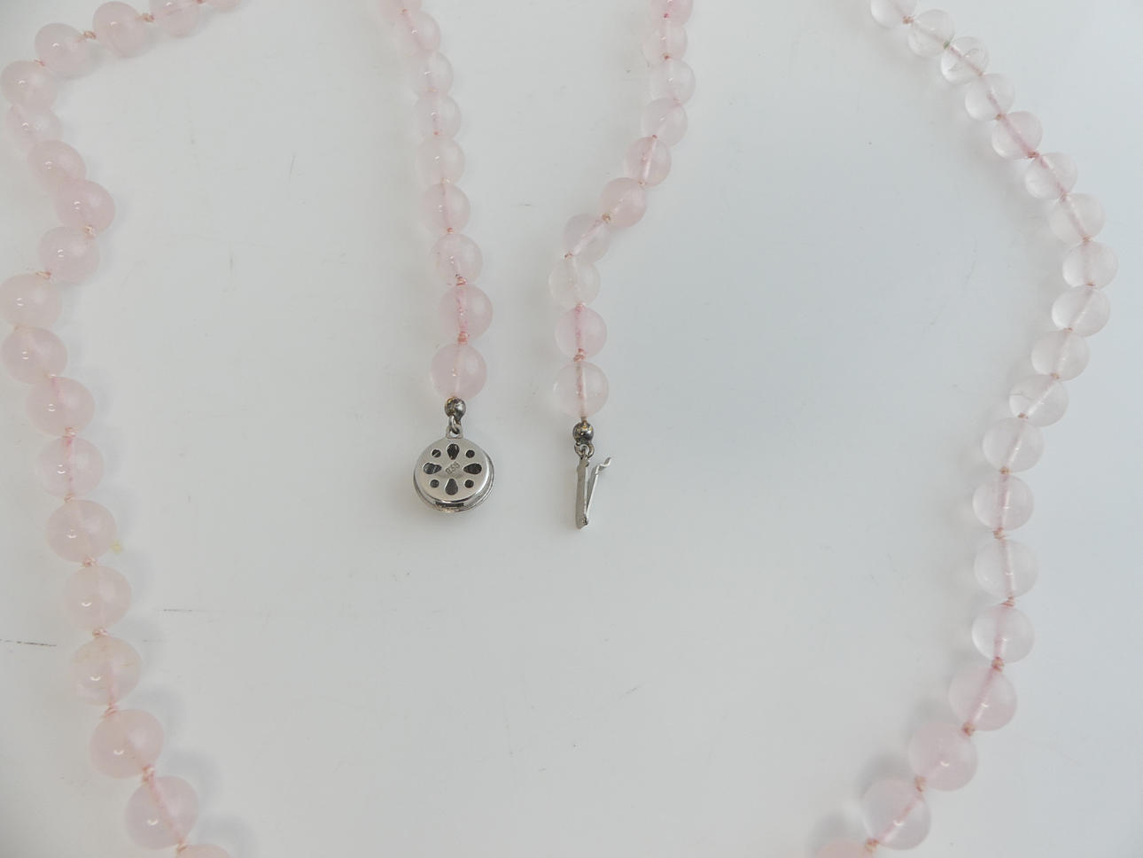 PERLEHALSKÆDE, rosenkvarts og 835 sølv.