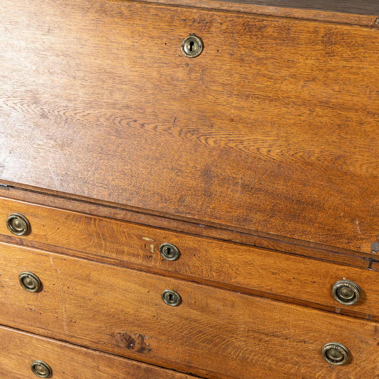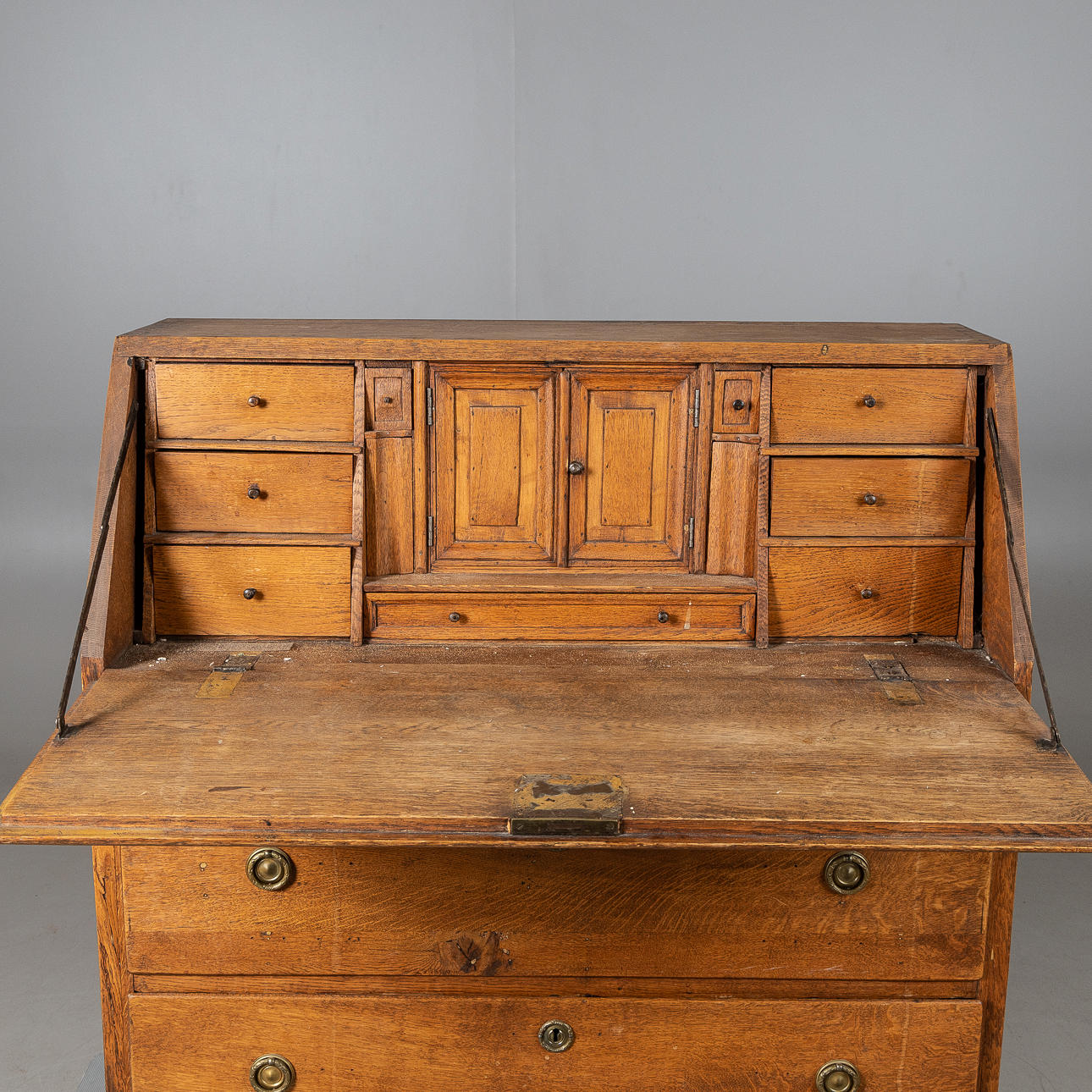 Sekretær, skrå klappe i egetræ, 1800-tallet.