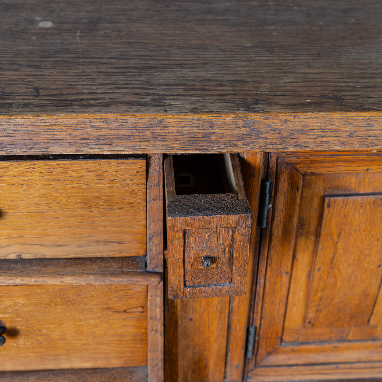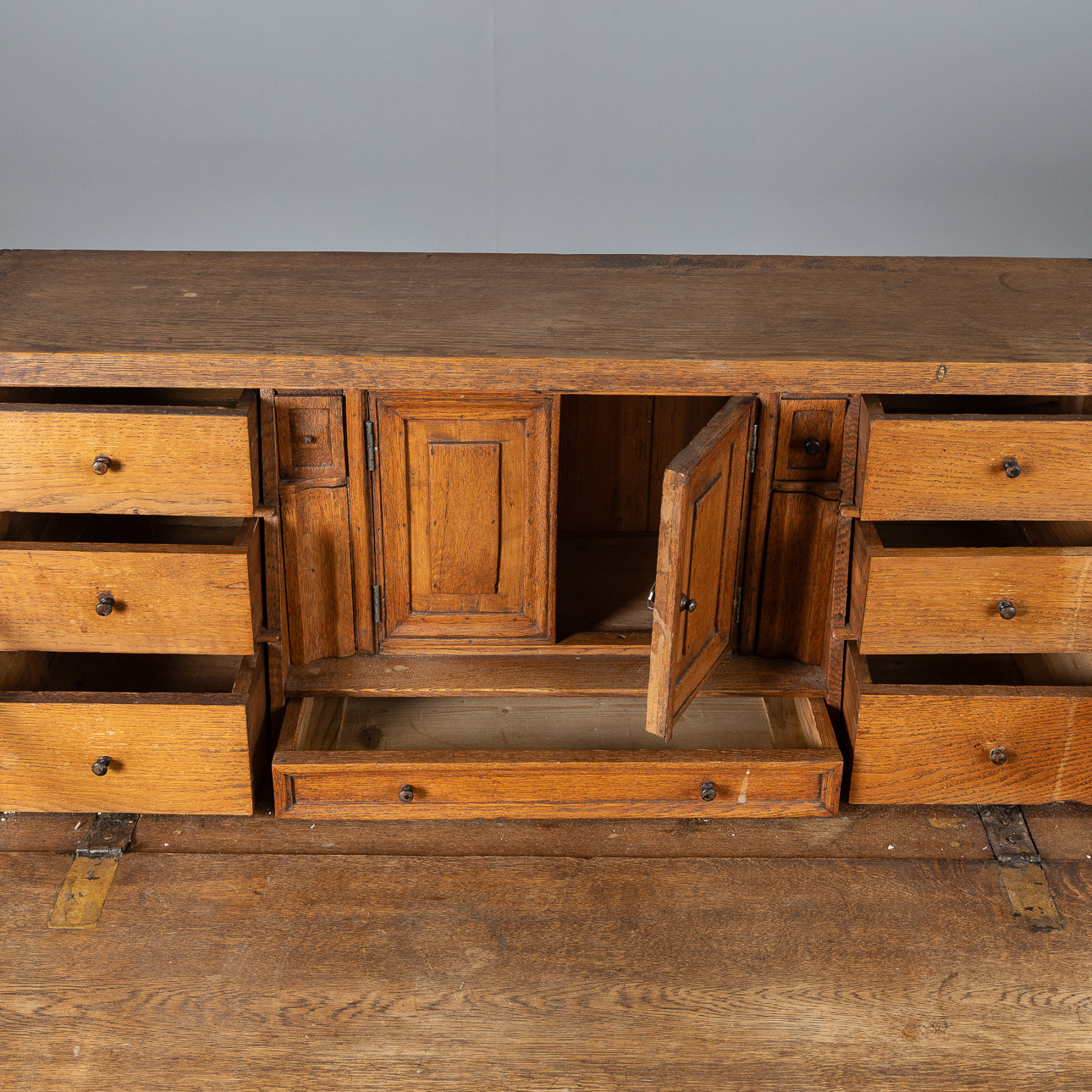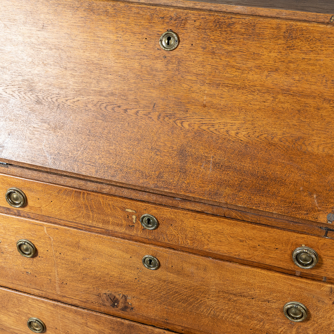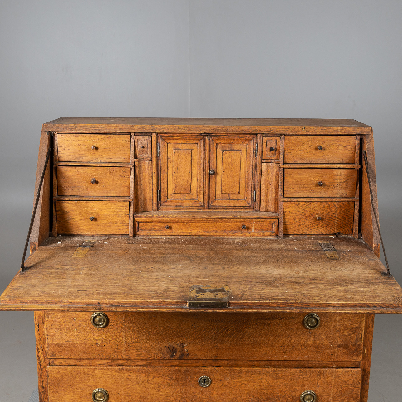 3693640. Sekretær, skrå klappe i egetræ, 1800-tallet.