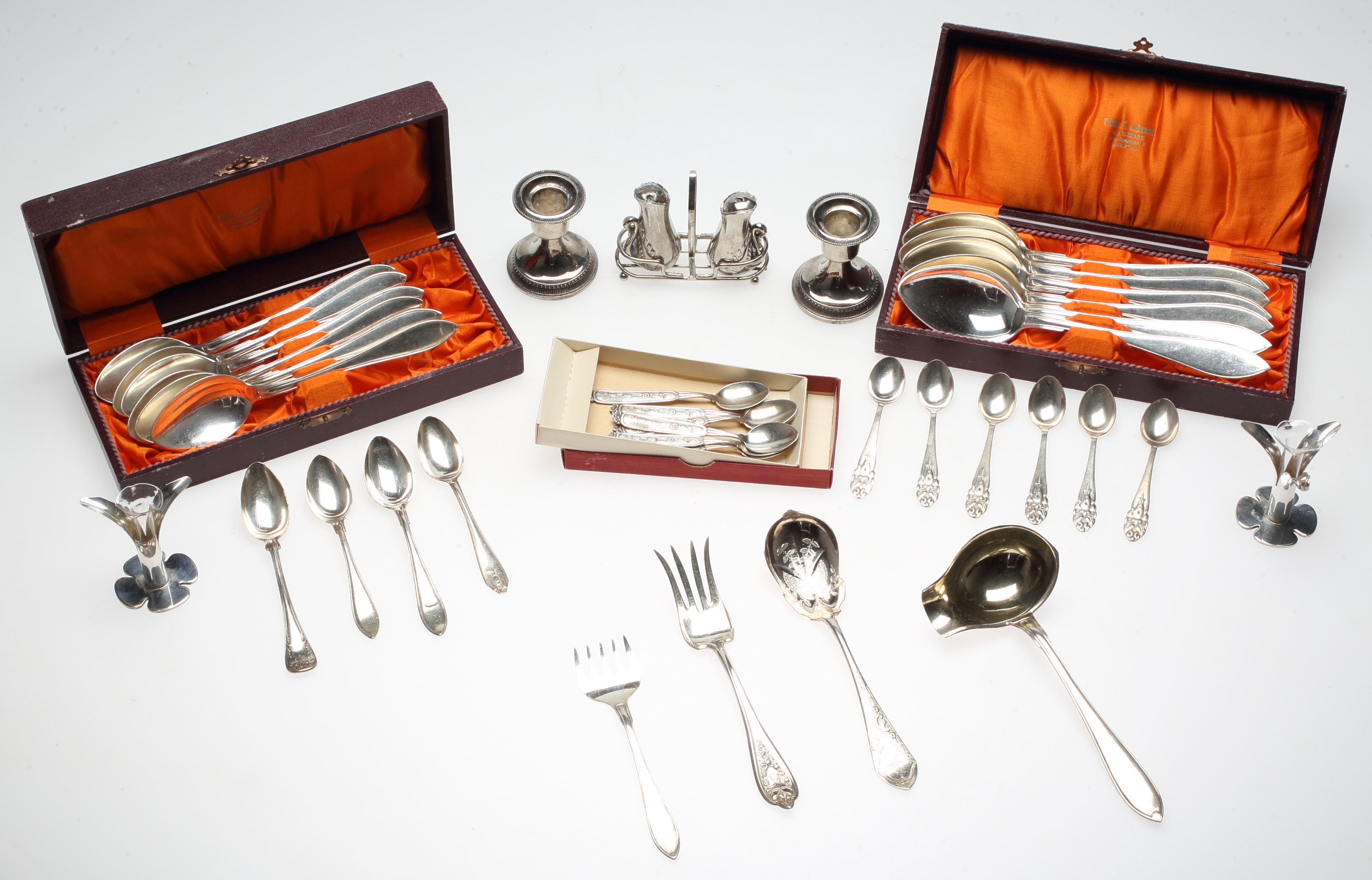 369441. NYE SØLVGENSTANDE, 37 dele, inklusive bestik, 1900-tallet.