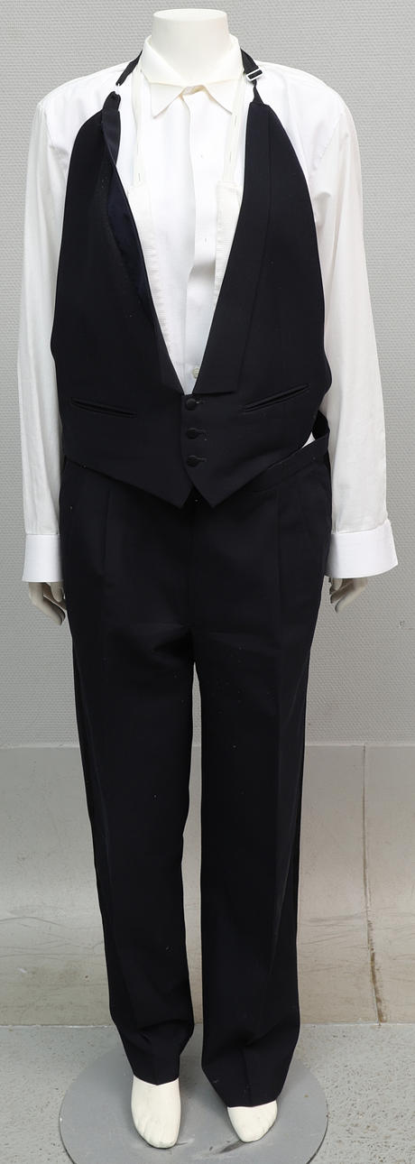 3694426. Frack, Falbe. Med skjorte, vest og bukser.