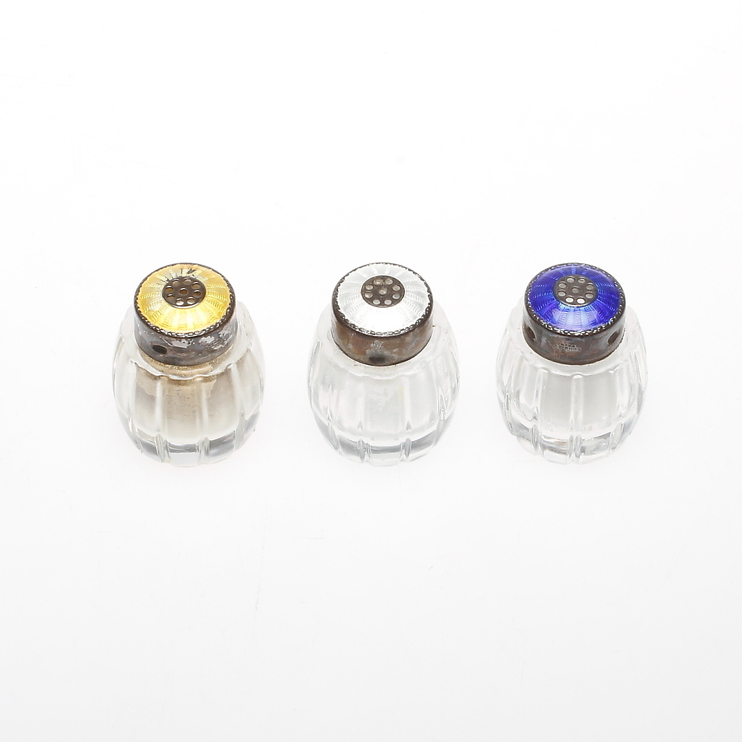 369578. STRÖARE, 3 stk, sølv, emalje og glas, Meka, Danmark.