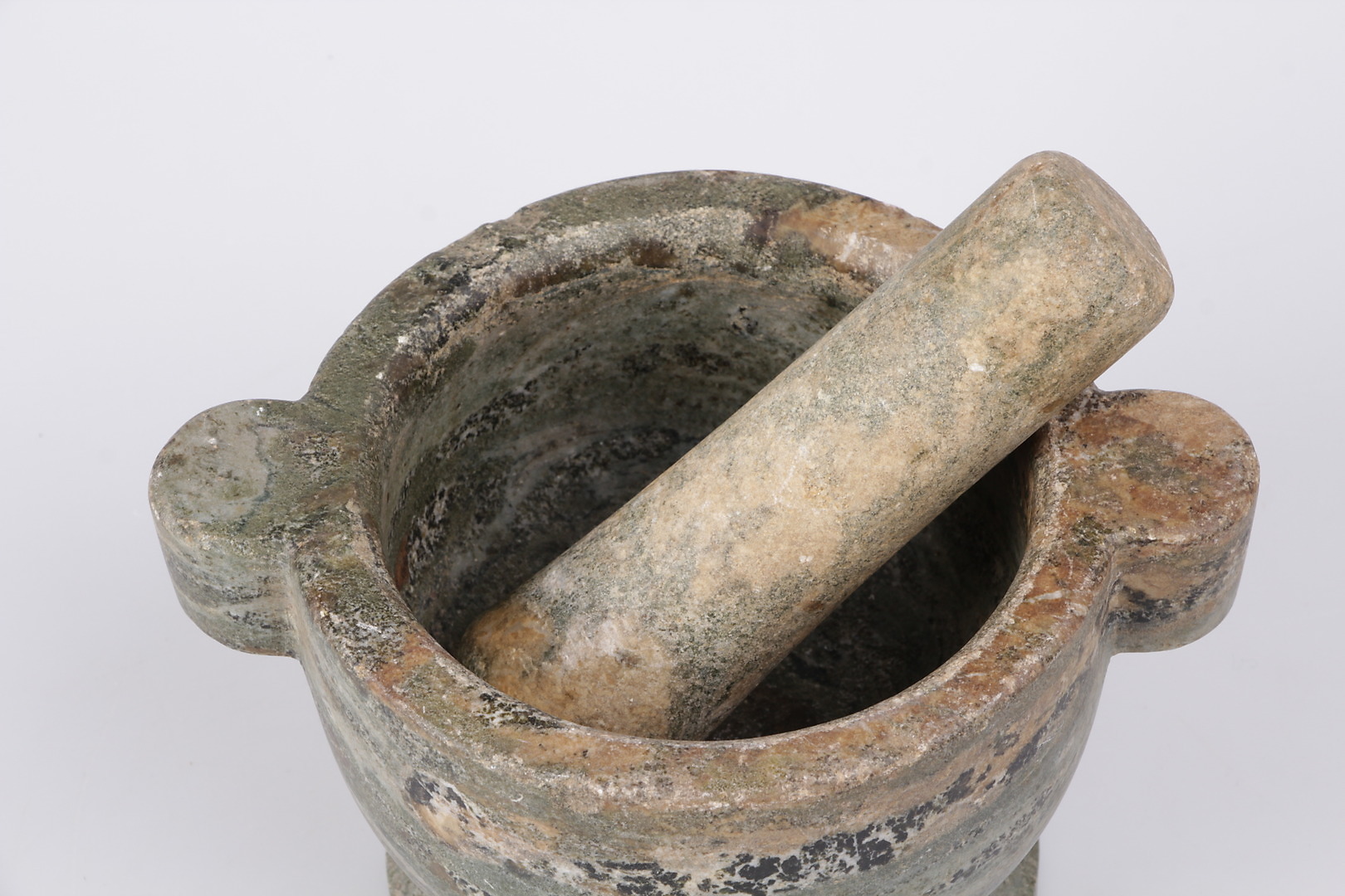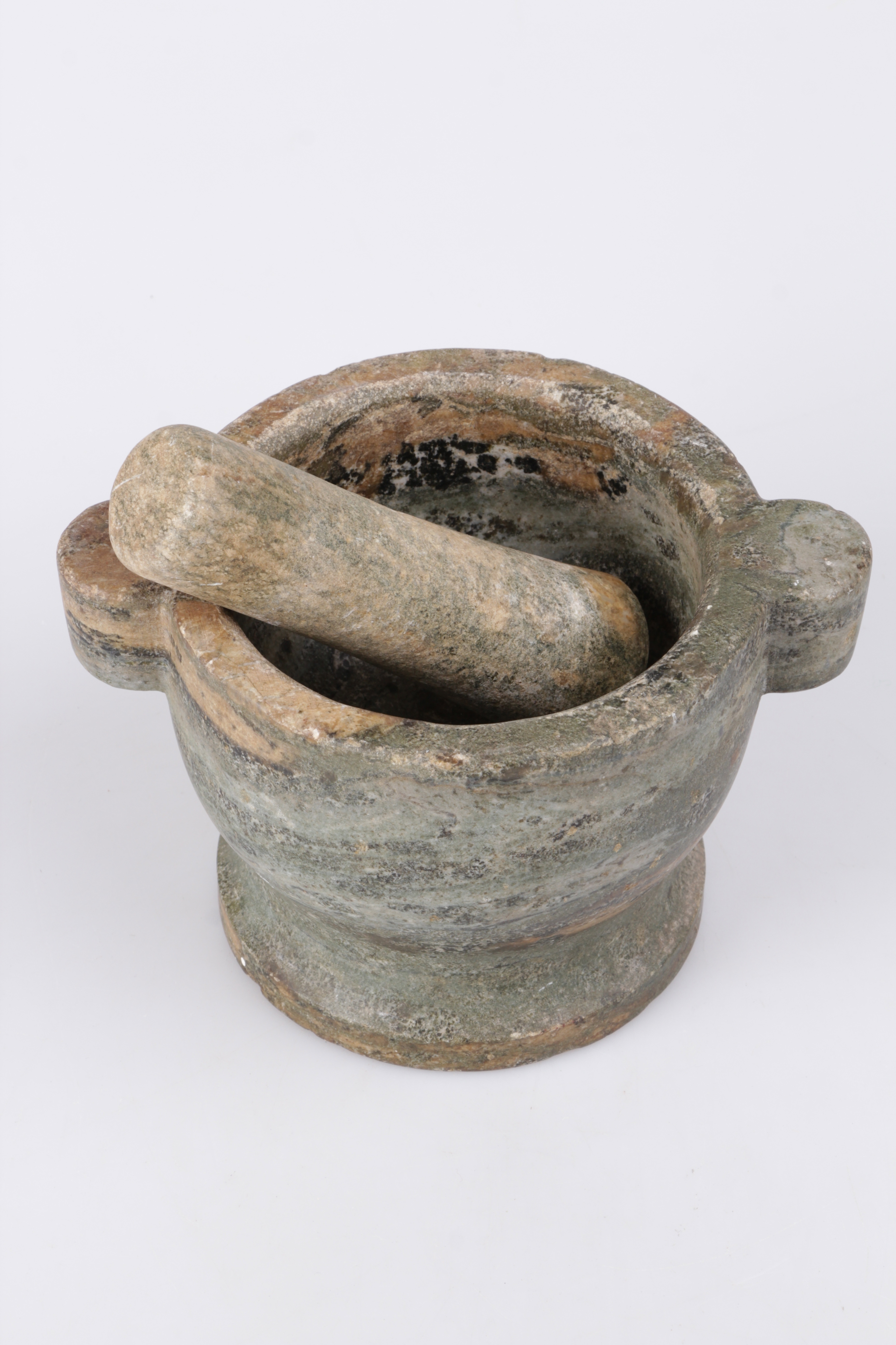 369875. MØRTEL, med støder, sten, 19./20. århundrede.