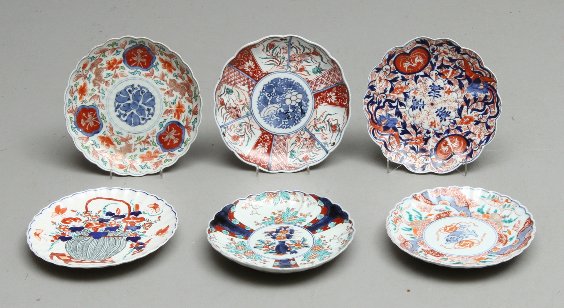 37016. PLADER, 6 stk, porcelæn, Imaride indretning.