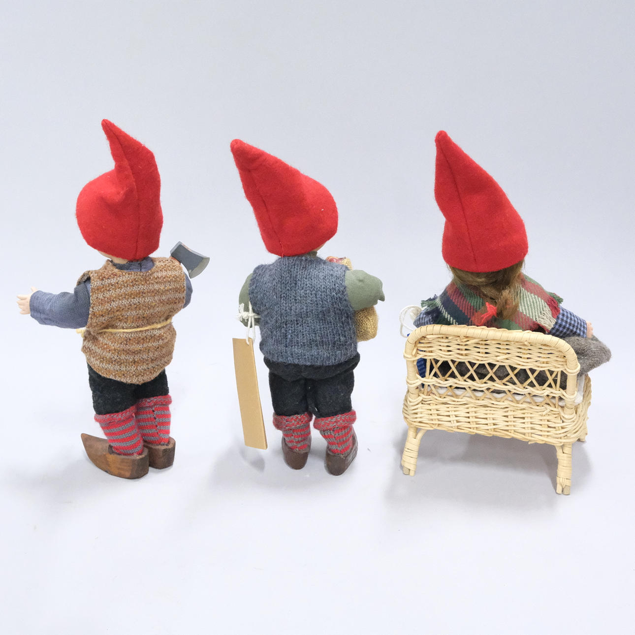 Fem nisser, højde 23-25cm og tre nordiske fariytaldukker, højde 18-19cm.