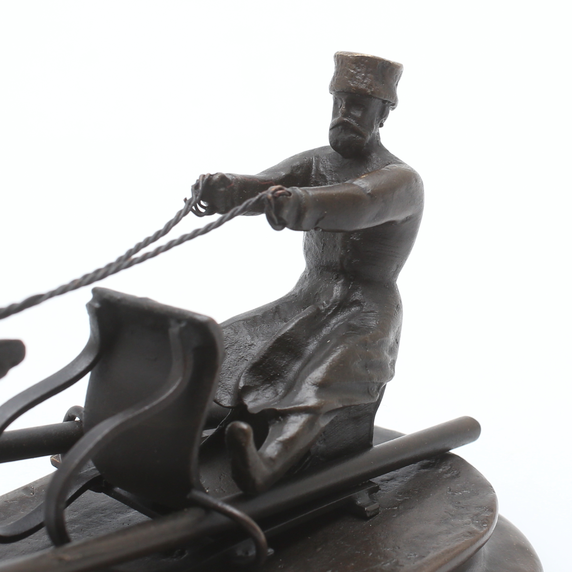 370605. BRONZESTATUE, forestillende en mand i en slæde efter en hest, efter Vasile Grachev, slutningen af det 20. århundrede/samtidig.