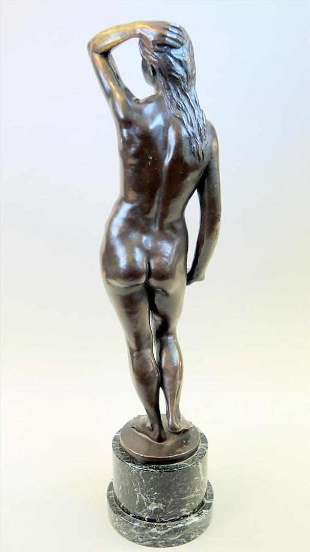 370621. BRONZESKULPTUR, nøgen kvinde.