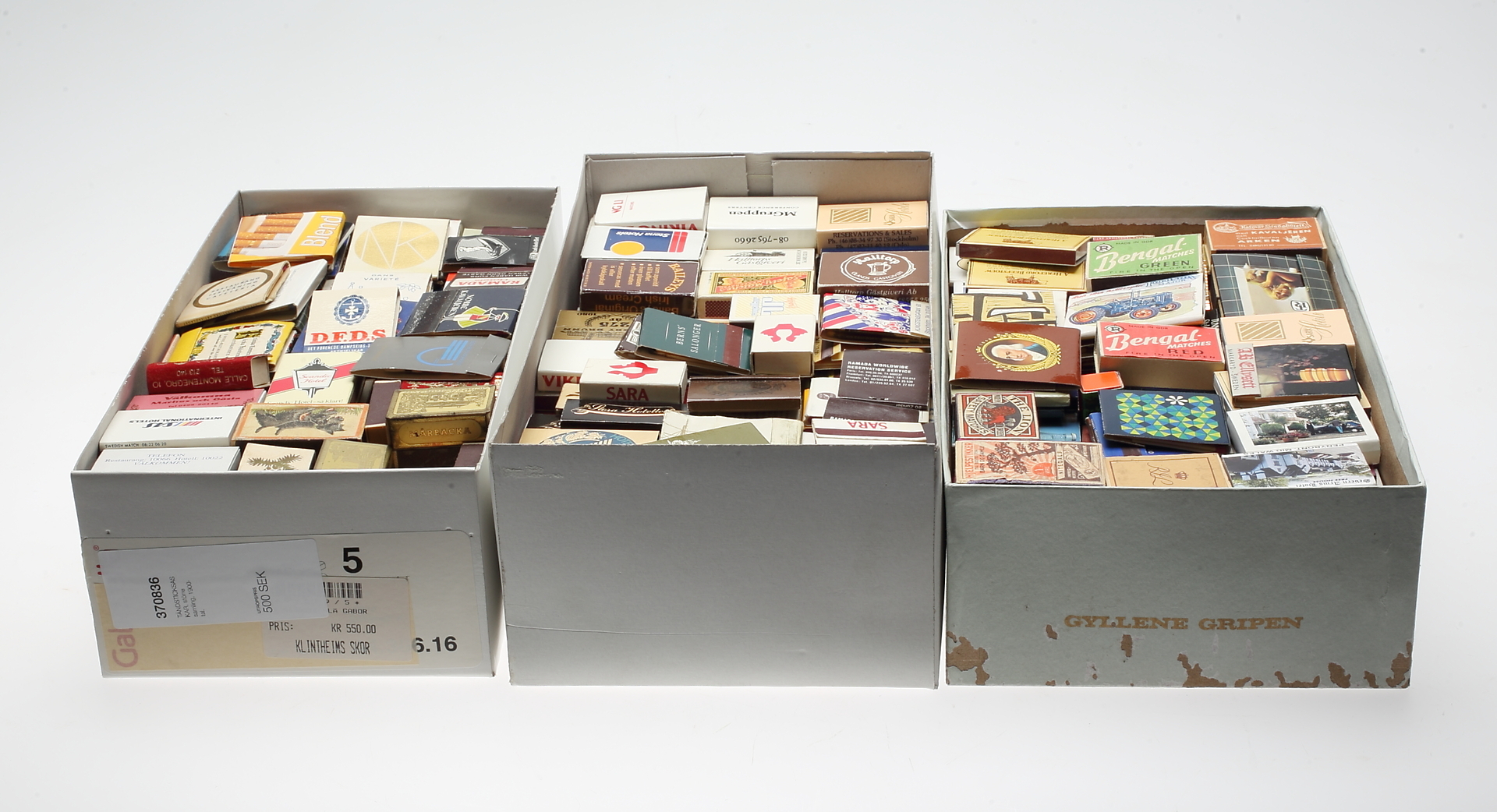 370836. TÆNDstikæsker, større samling, 1900-tallet.