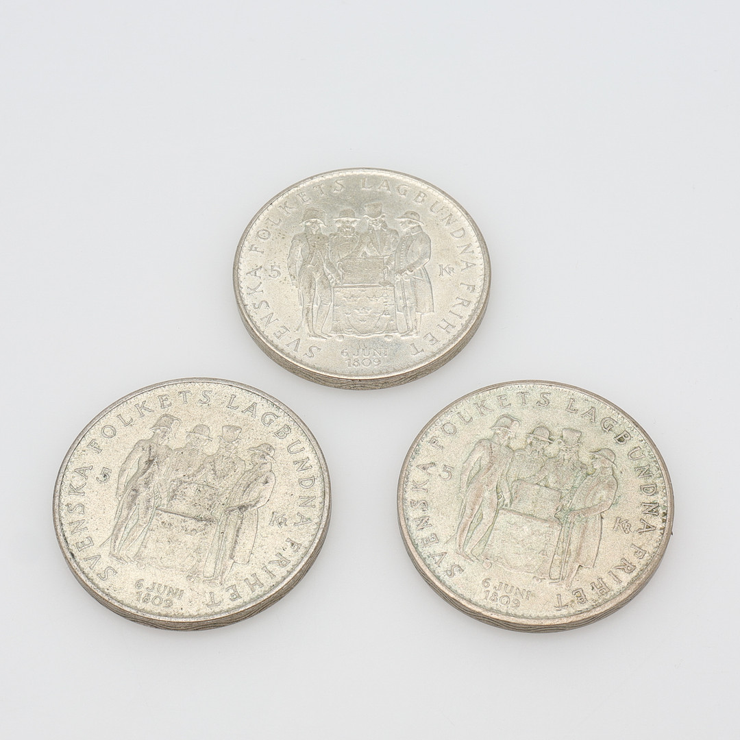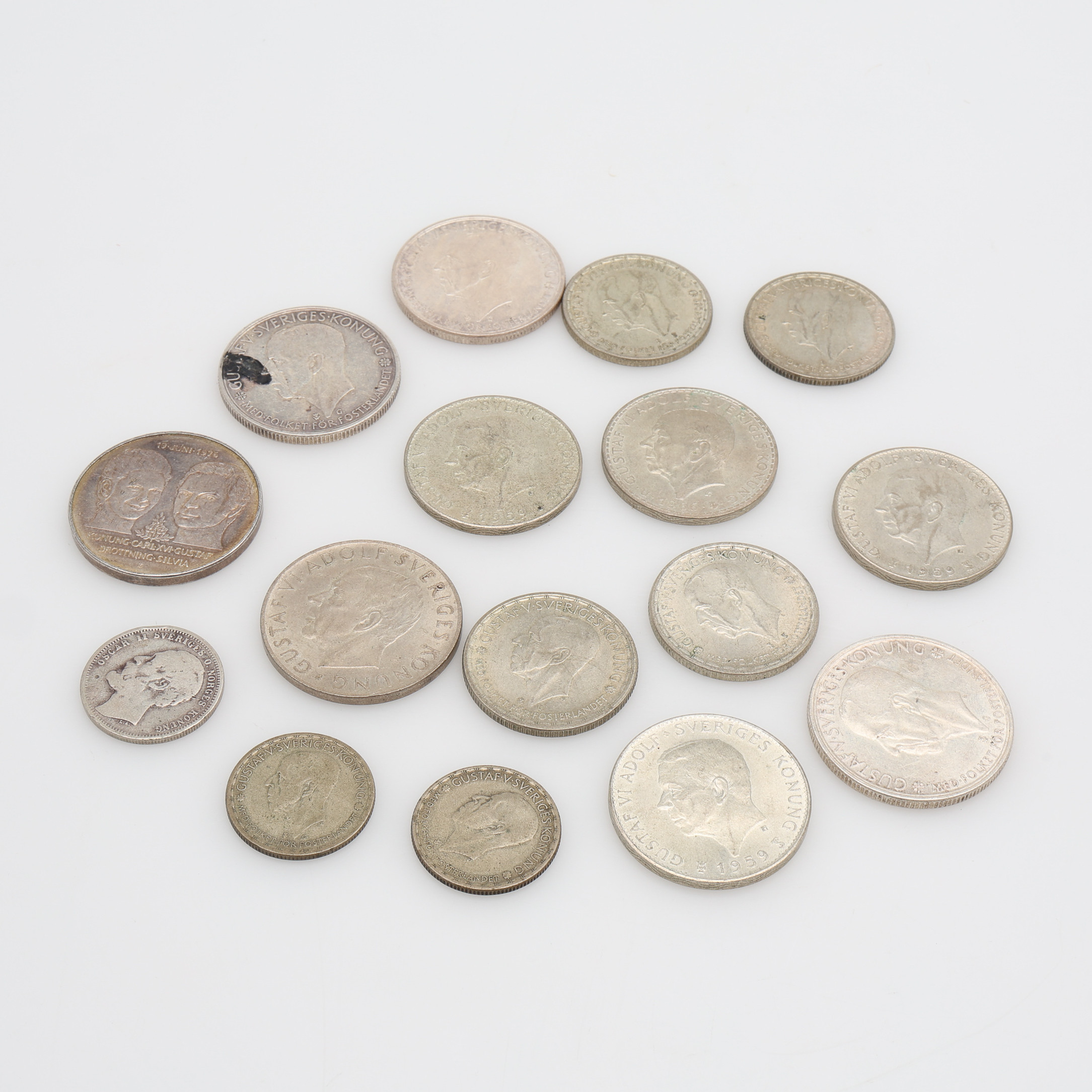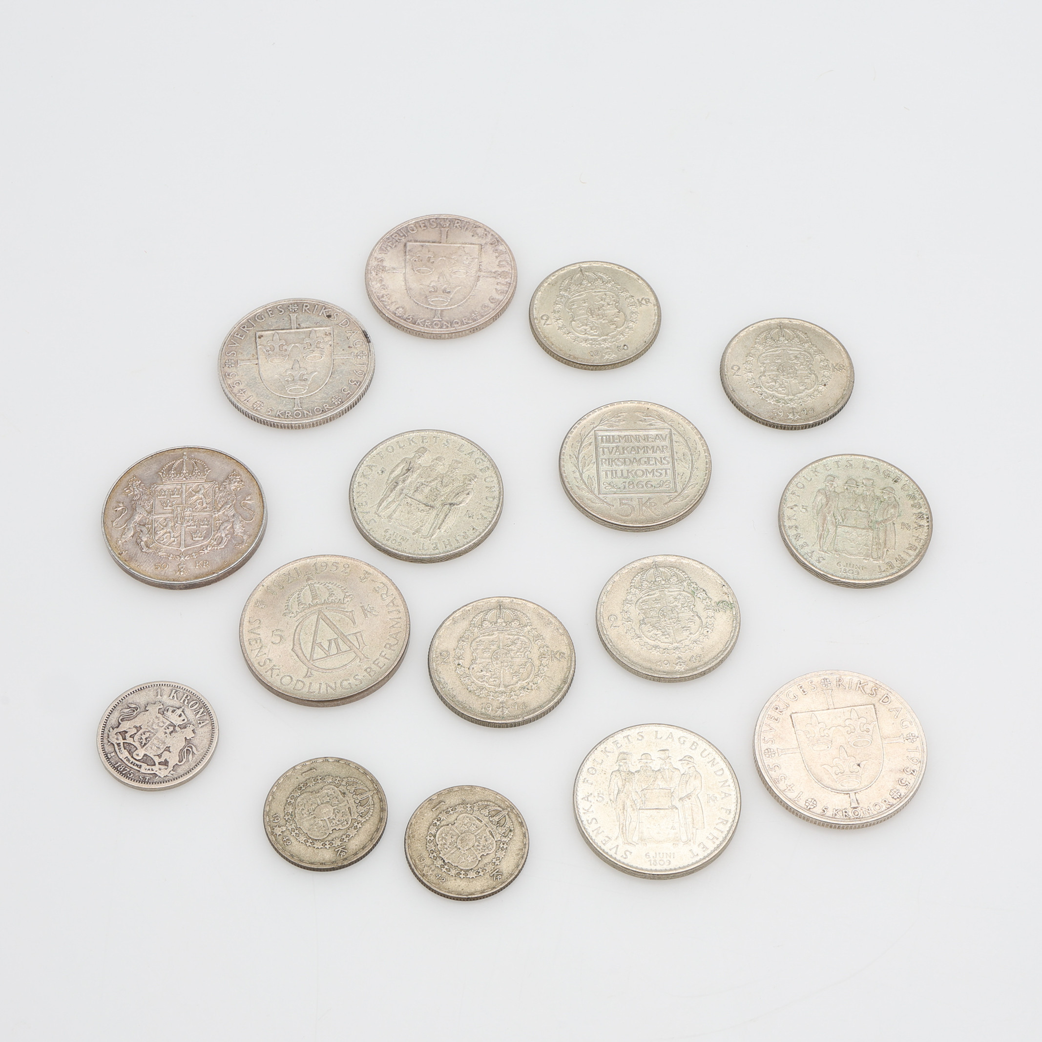 3710265. SVENSKE MØNTER, SØLV, SAMLET VÆGT 273 g.