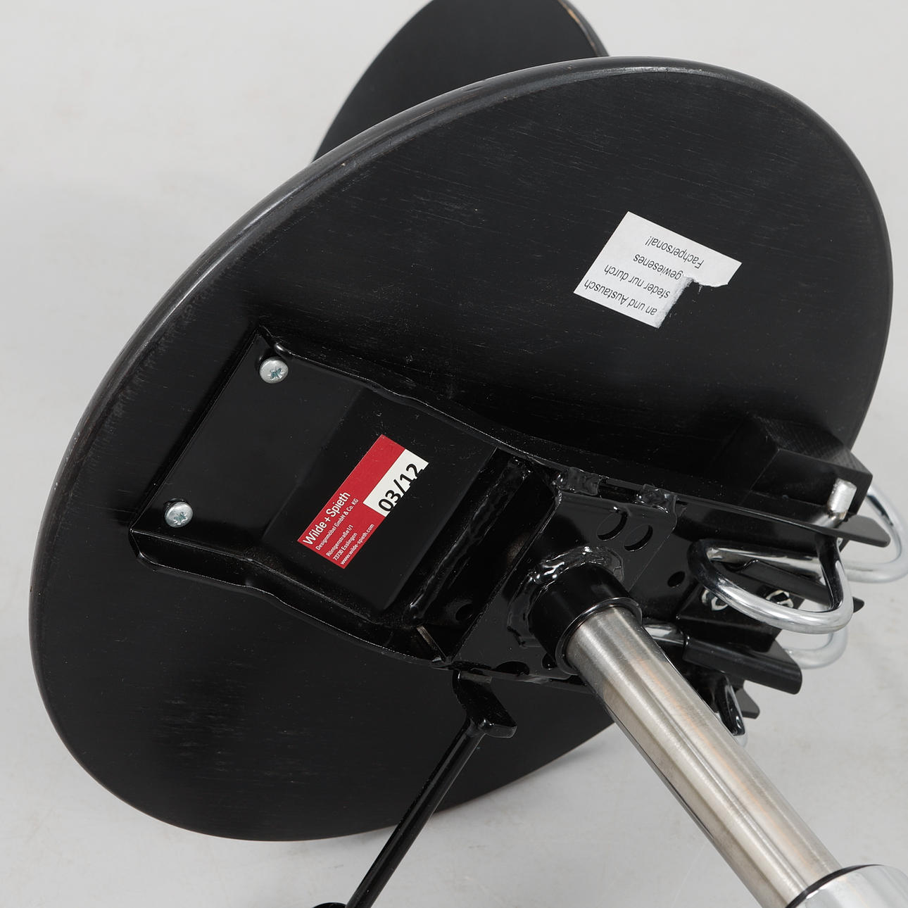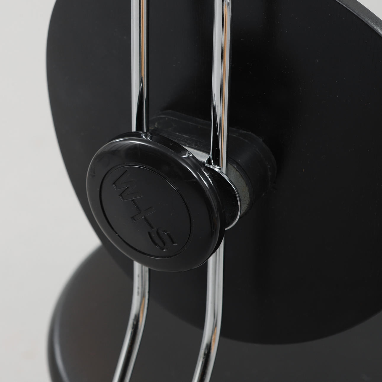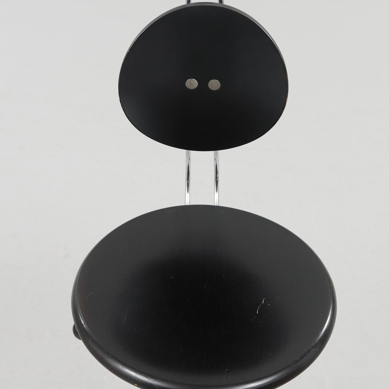 Forkromet stålramme, sort lakeret træ i ryg og sæde. Drej, hæv og sænk. Justerbar rygskive. Mærket. Sædehøjde ca. 45 - 57 cm.