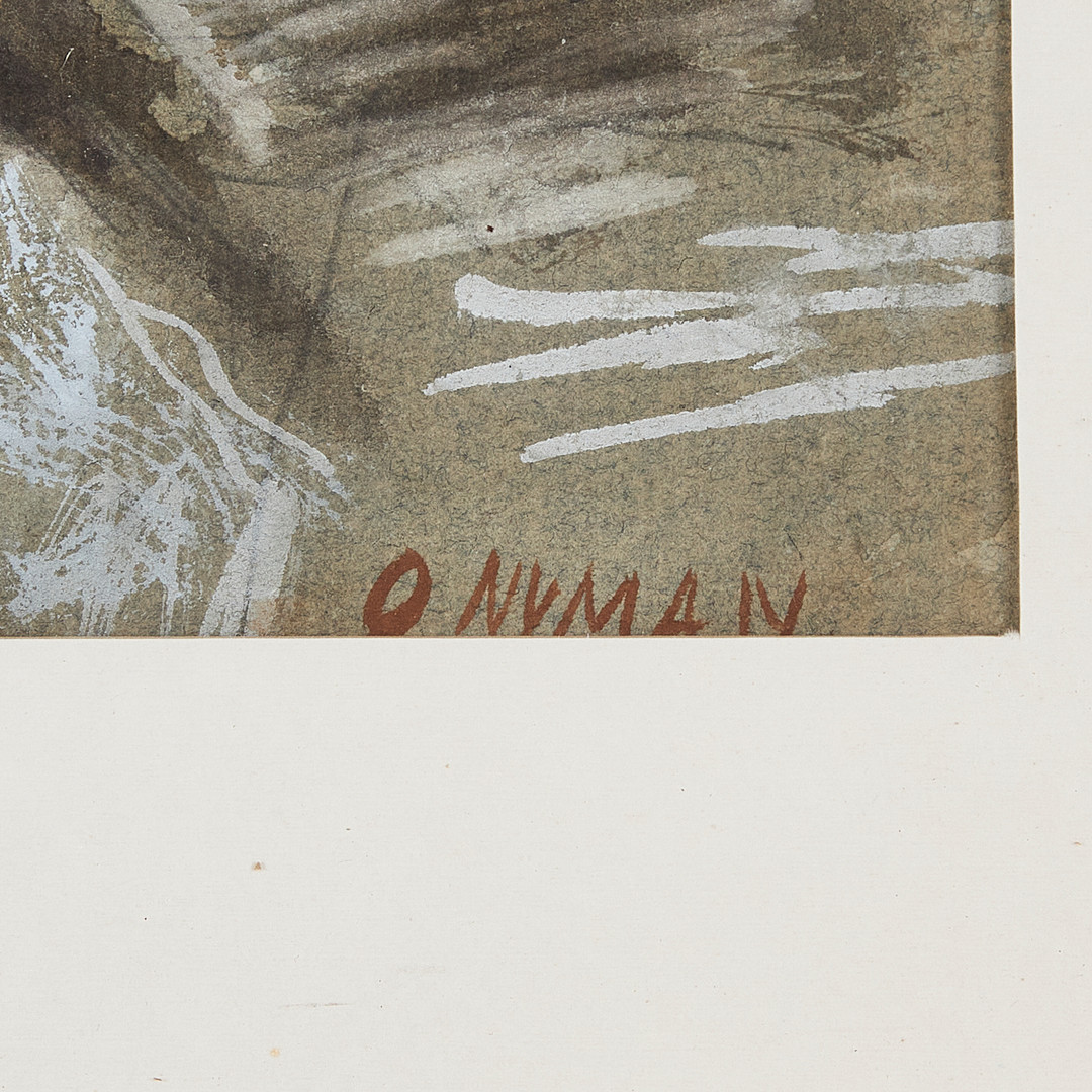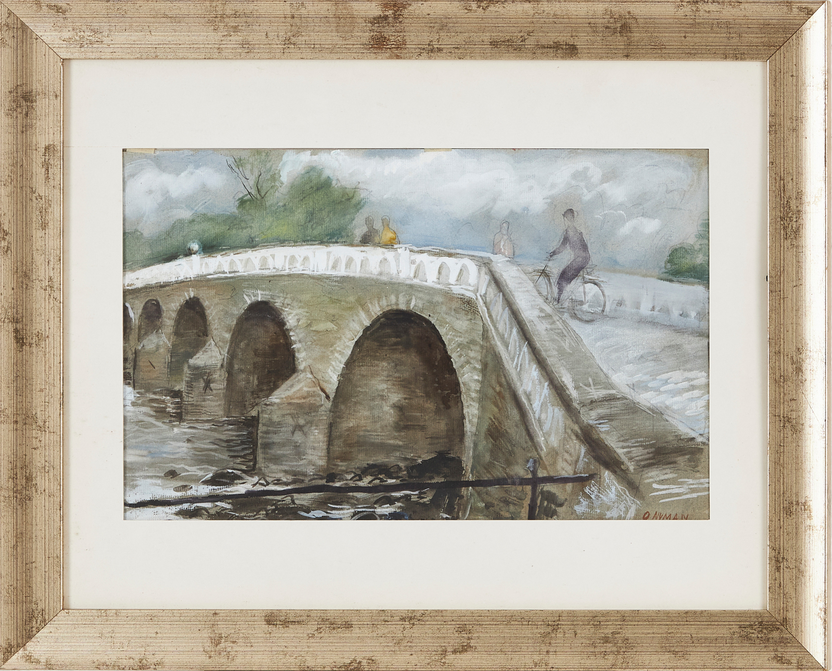 3721402. OLLE NYMAN. Bromotiv med cyklist, akvarel.