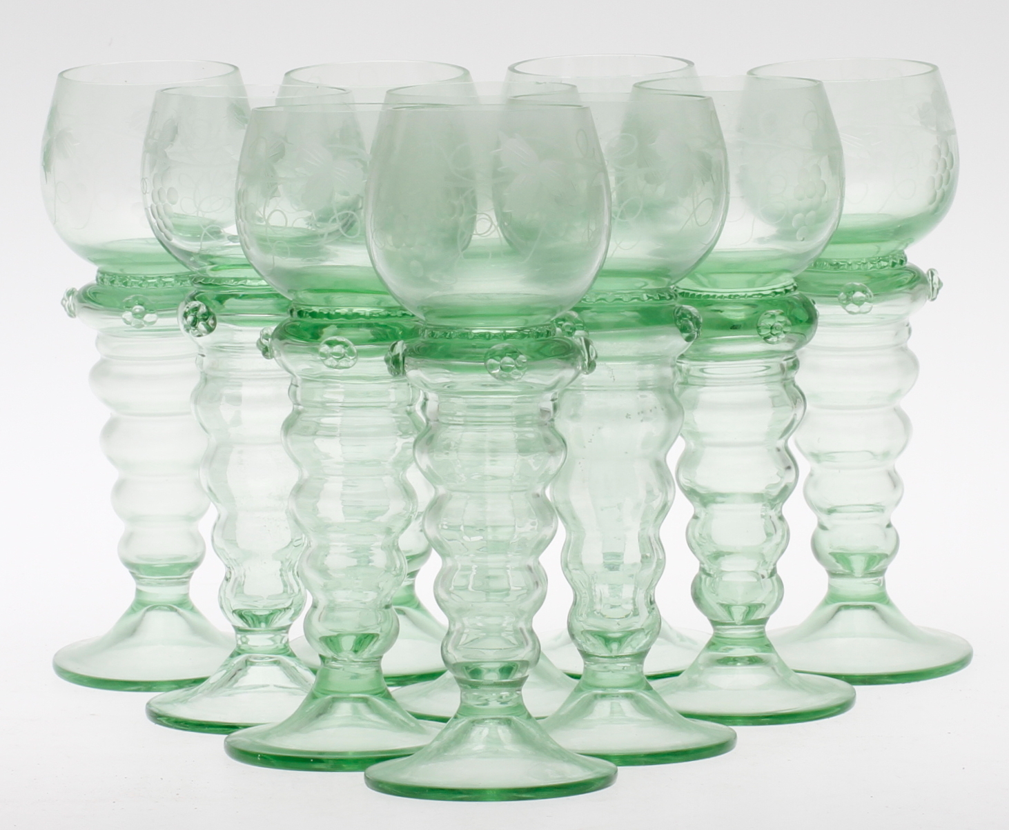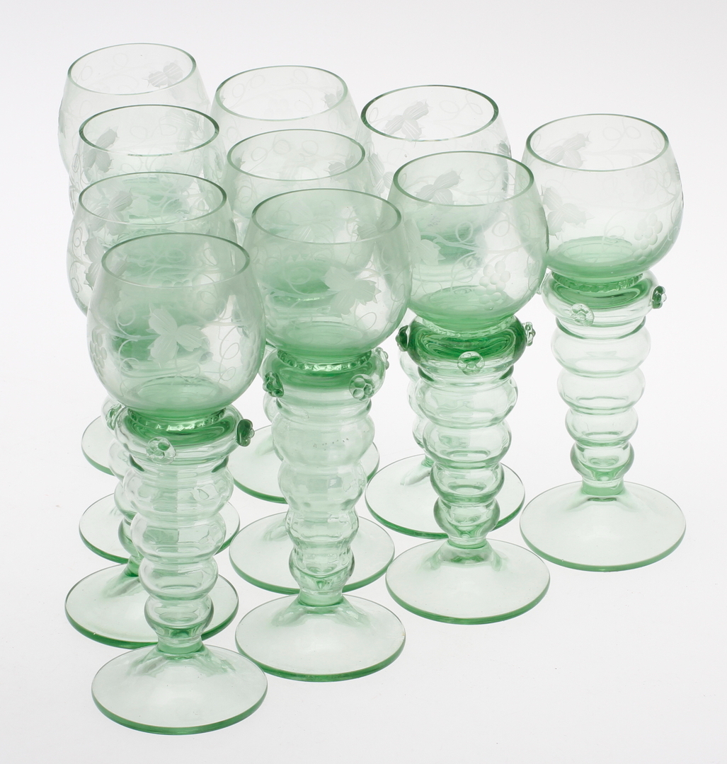 37244. HVIDGLAS GLAS, 10 stk, såkaldte stropper, 1900-tallet.