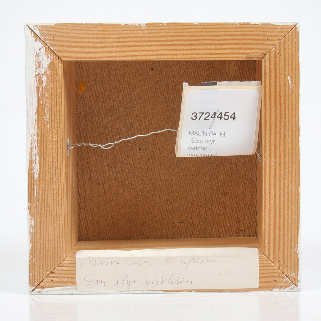 3724454. MALIN PALM. „Hvem styrer verden“, tempera på panel, monogram signeret.