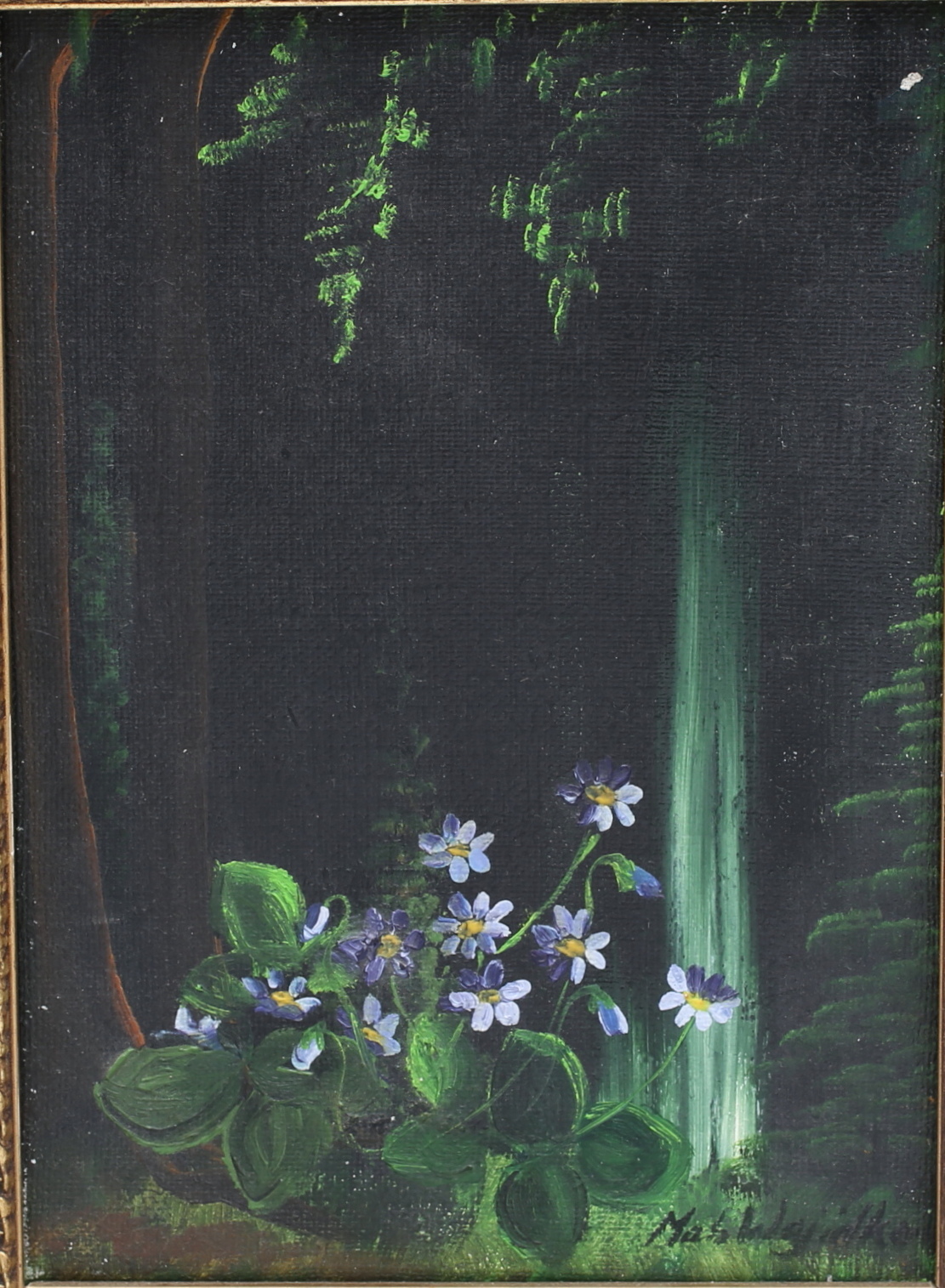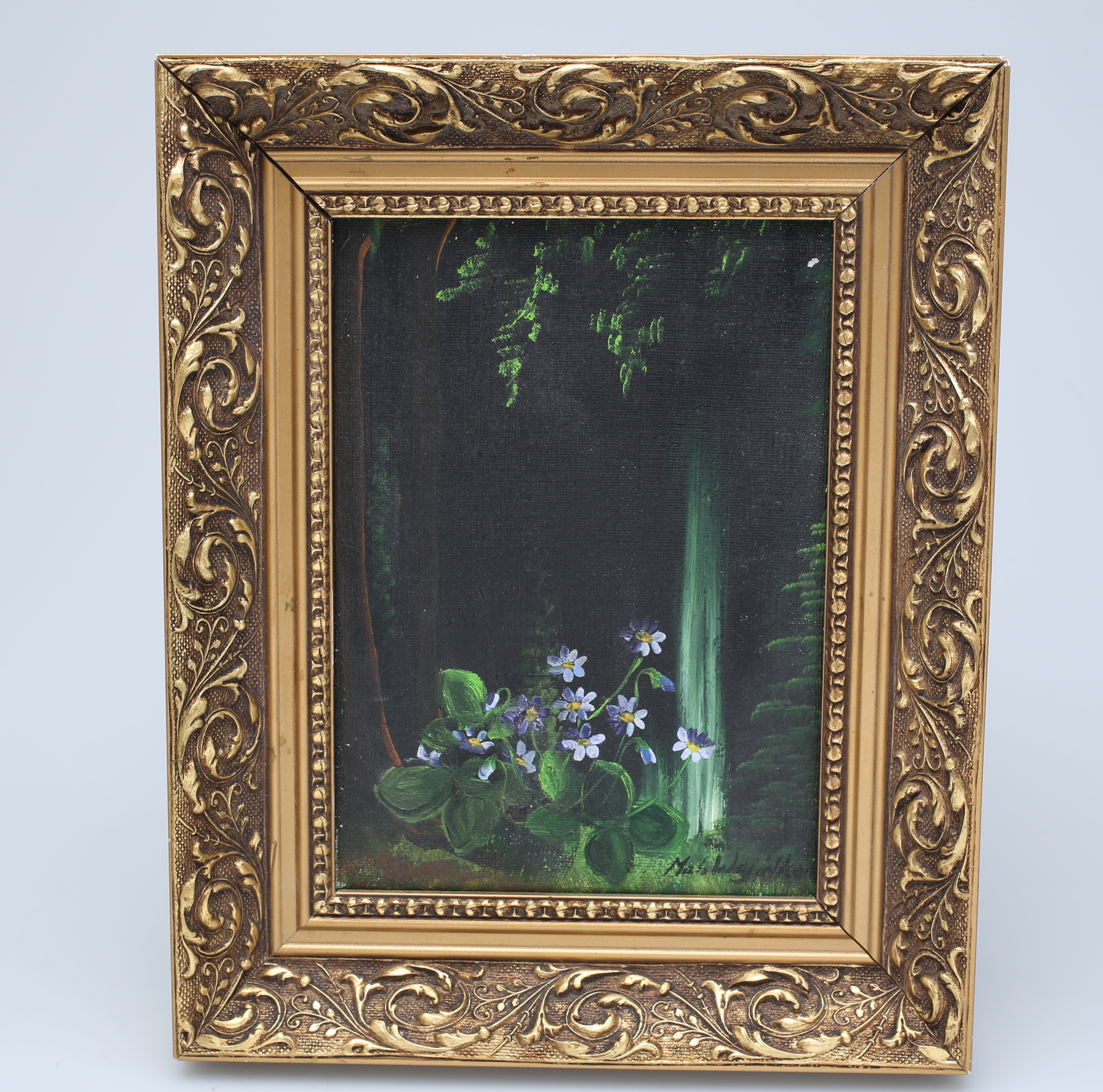 372865. OLIEMALING PÅ LÆRD, Blåsippa.