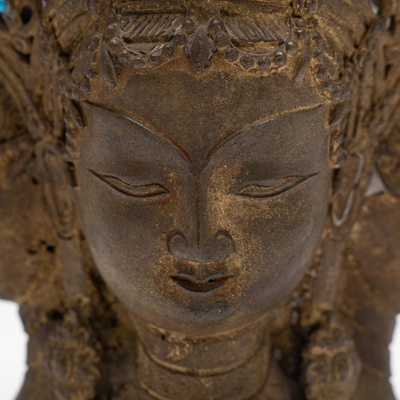 Rundt hovedelement lavet af patineret støbt messing med flere flader, H.17cm, L.16cm, W.16cm.