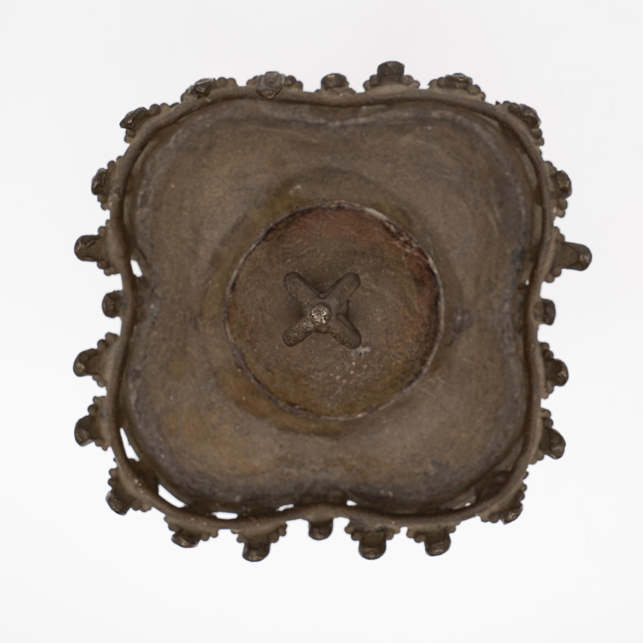 Alderstilpassede tegn på brug og gnidning, delvis patina, for det meste mangler emaljer.