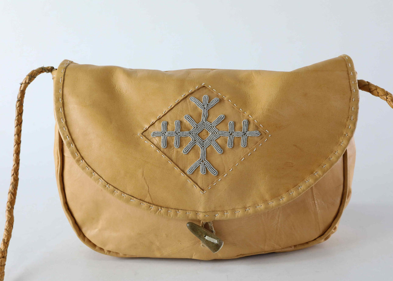 Samisk vævet taske, læder og tintråd.