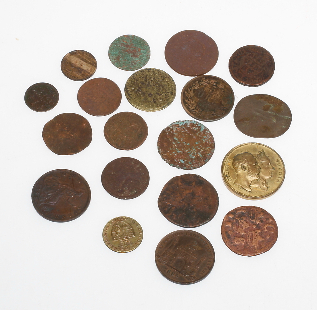 373684. MØNTER, 19 stykker, 1700-1800-tallet.