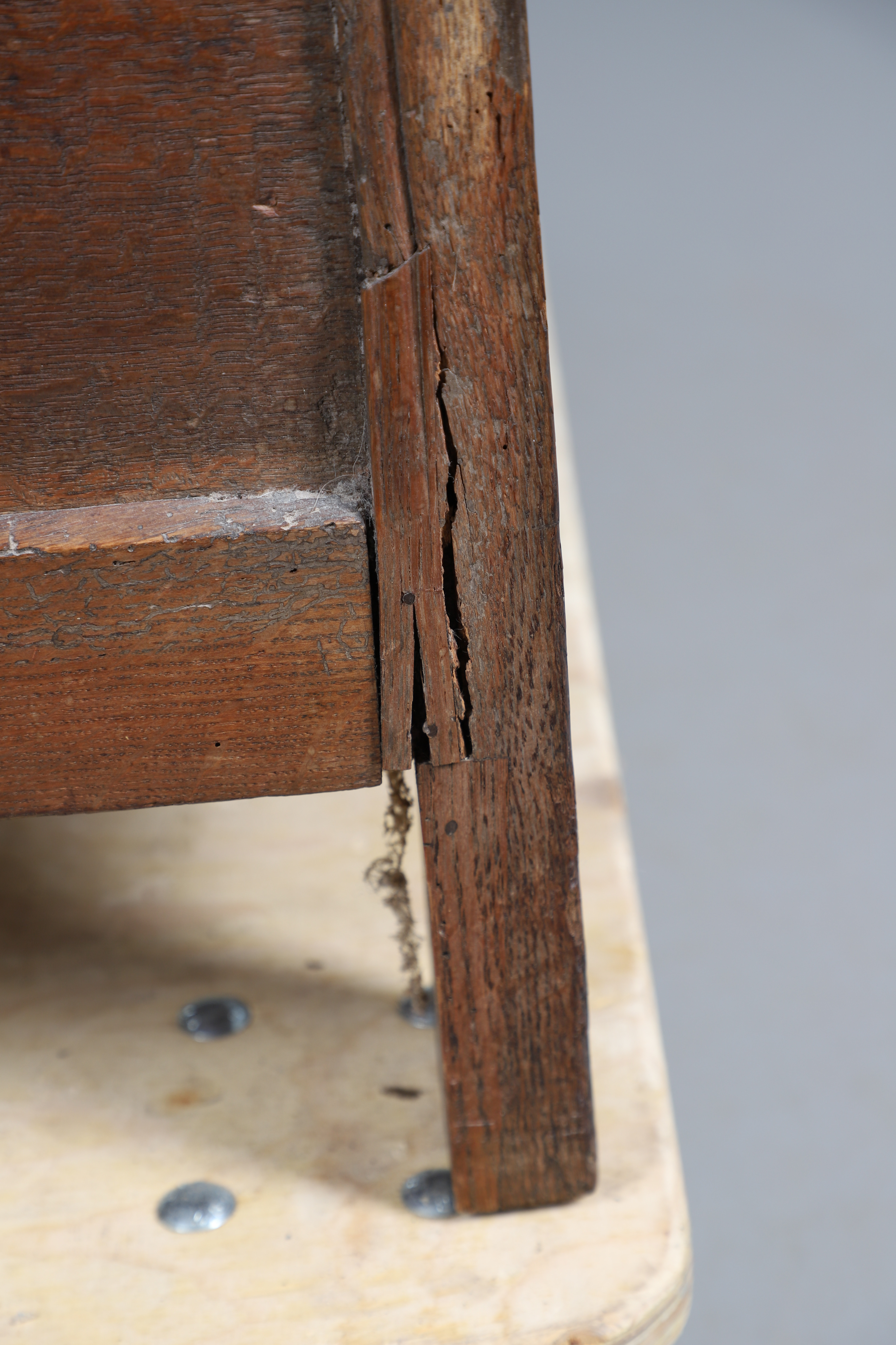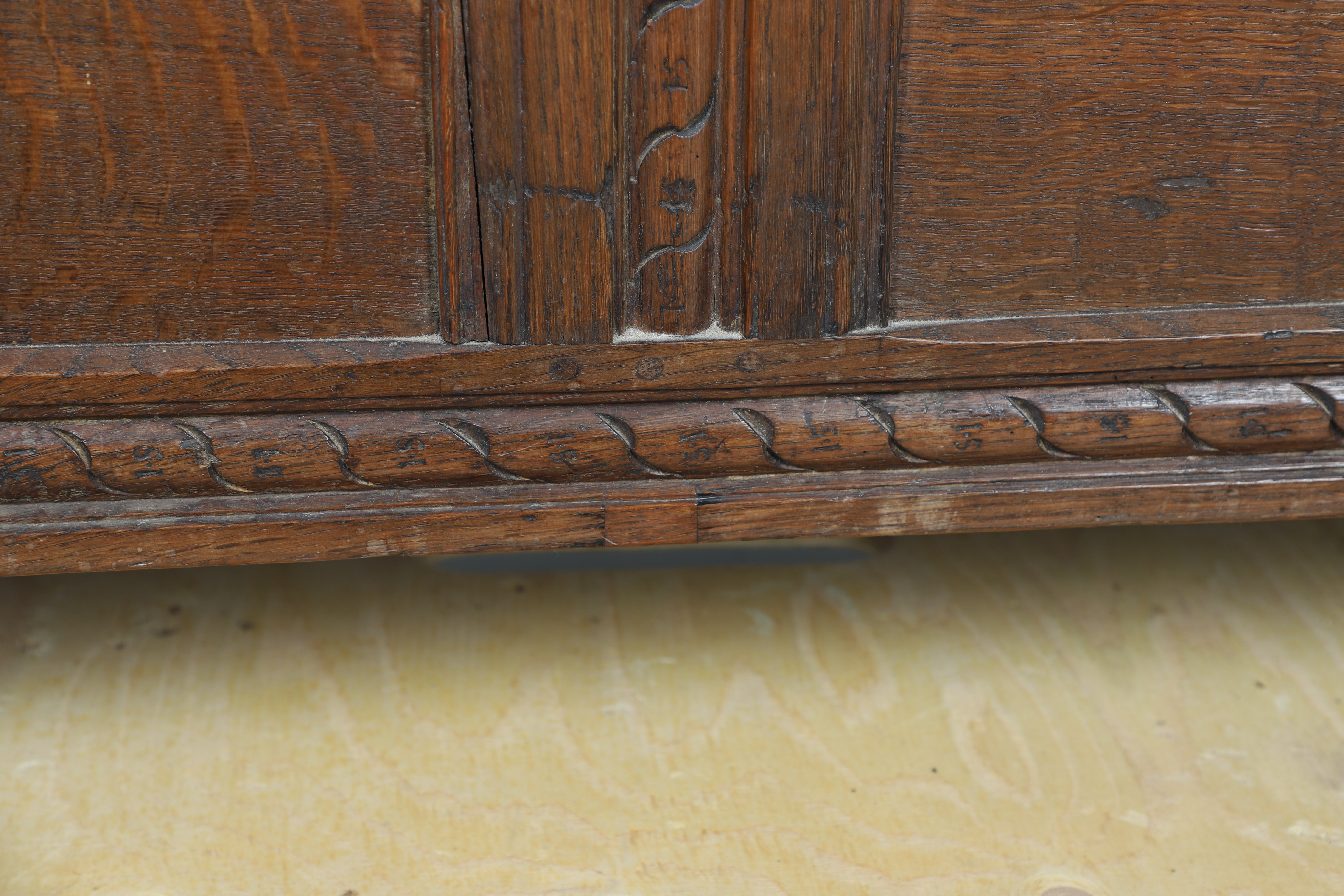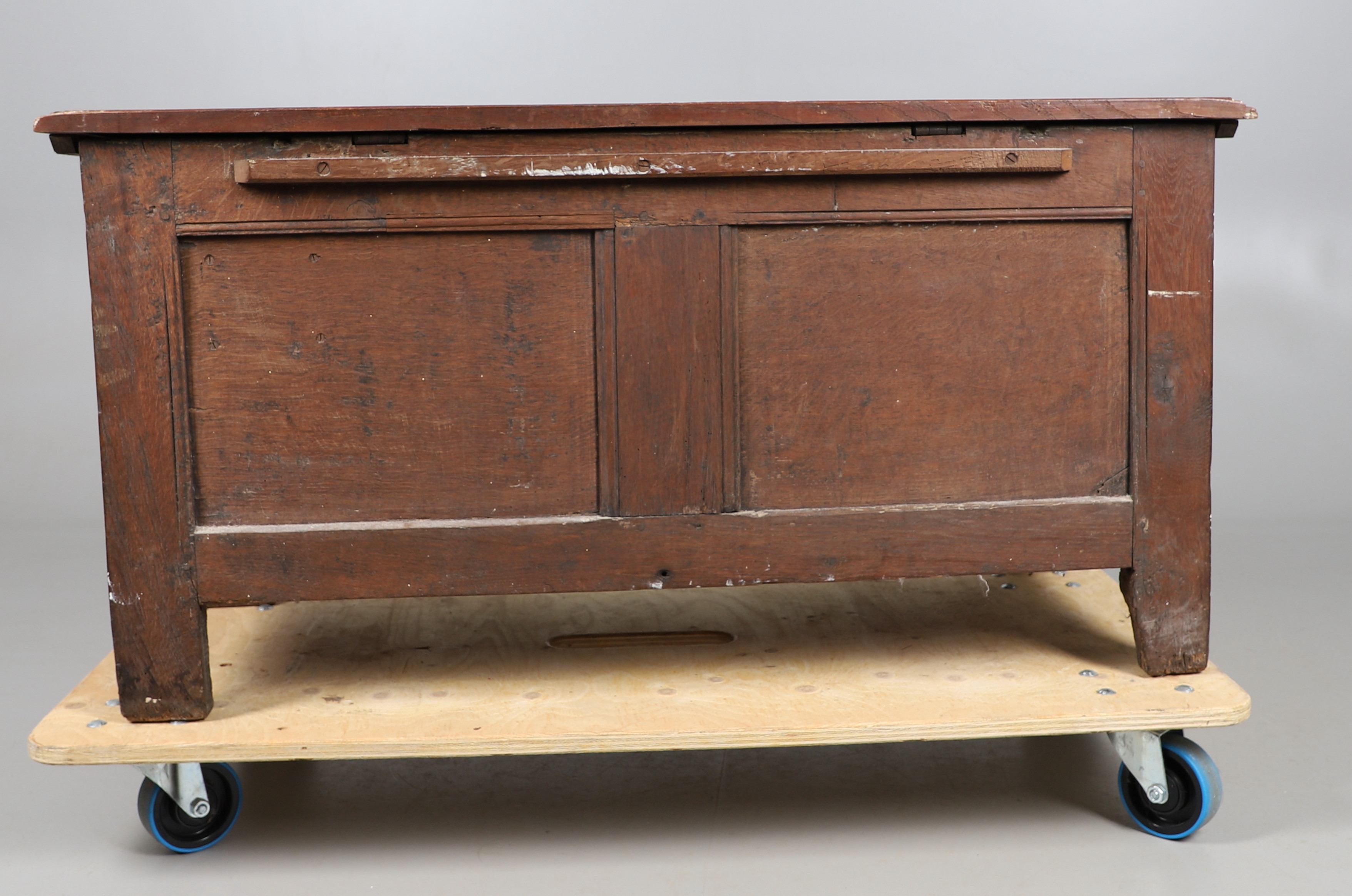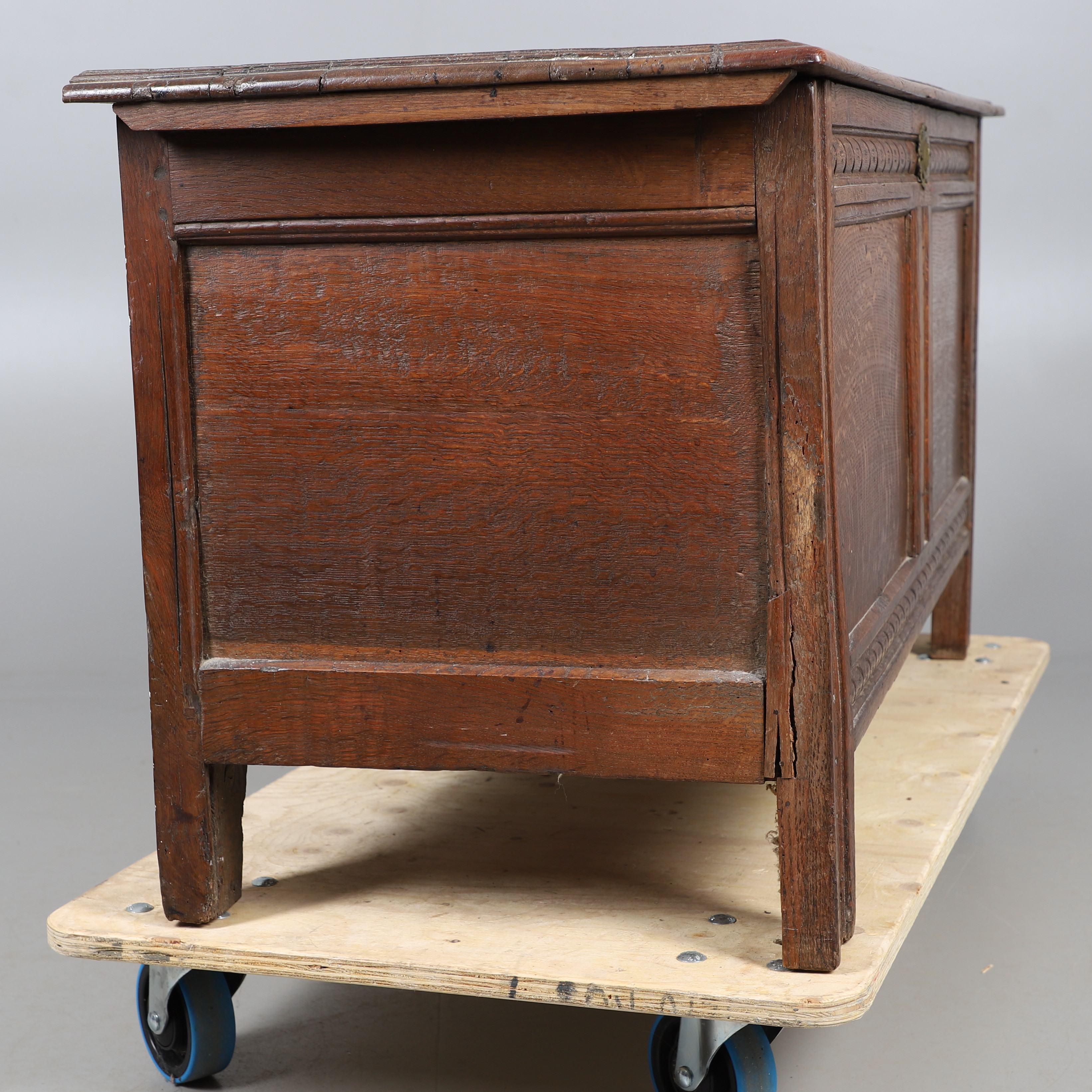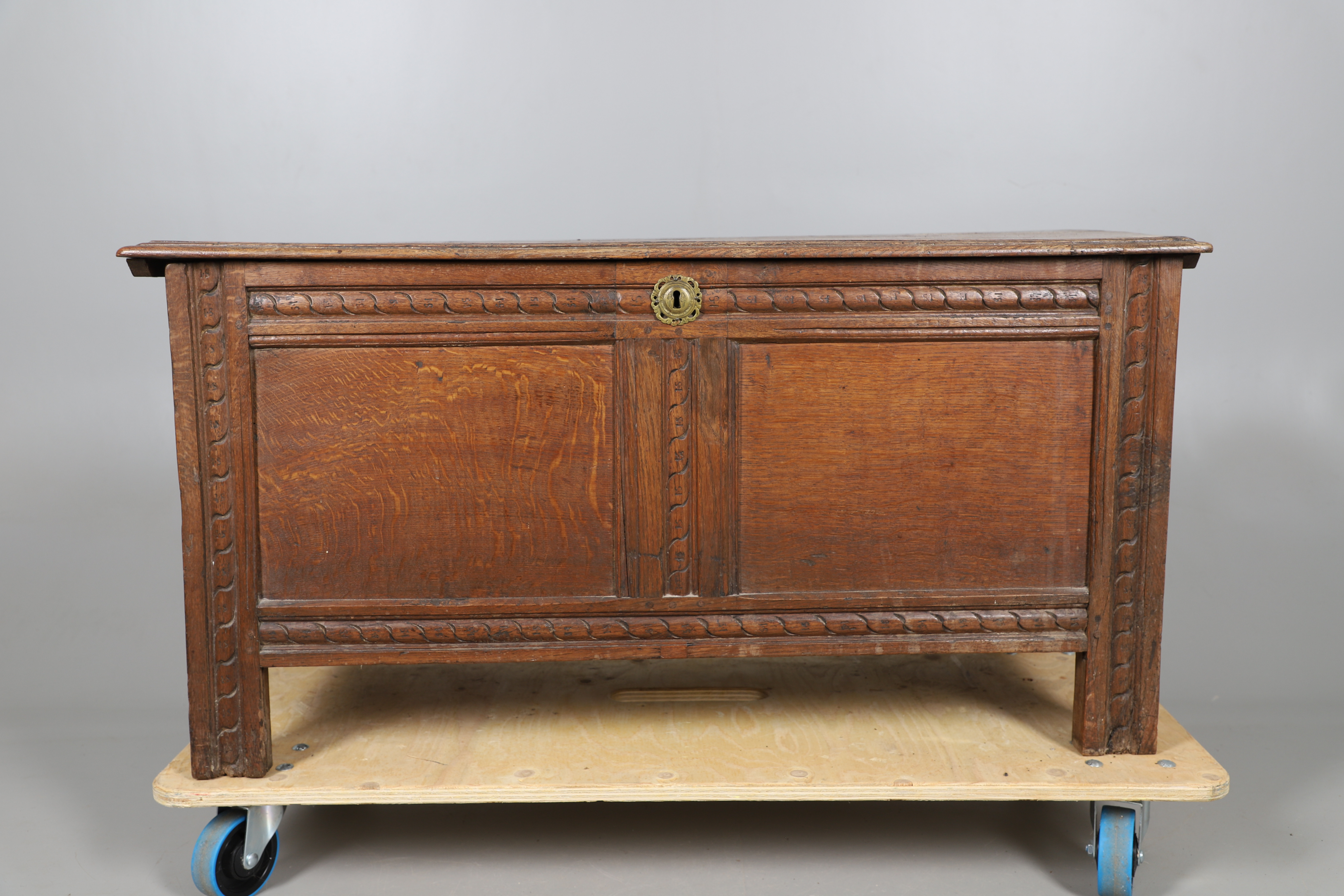 3737079. ANTIK EGETRÆSKASSE - UDSKÅRNE INITIALER.
