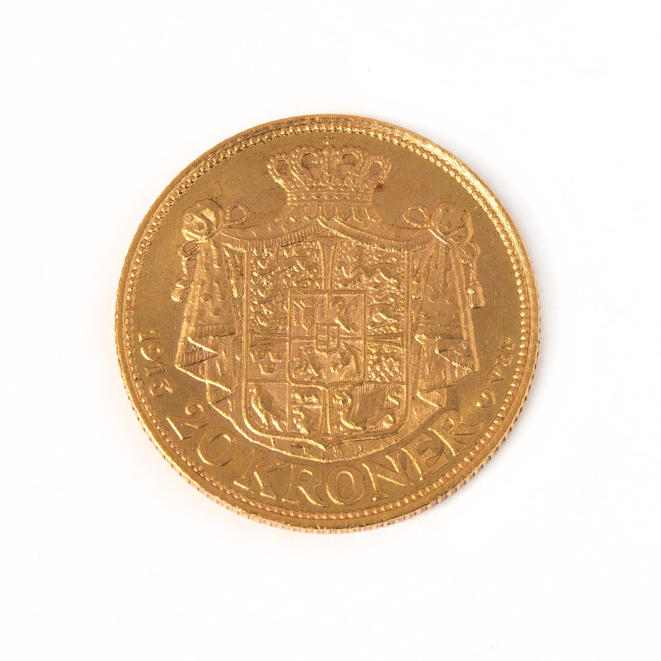 Mønt, Christian X af Danmark, 18K guld, 1913.