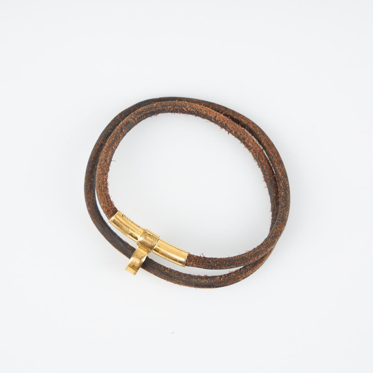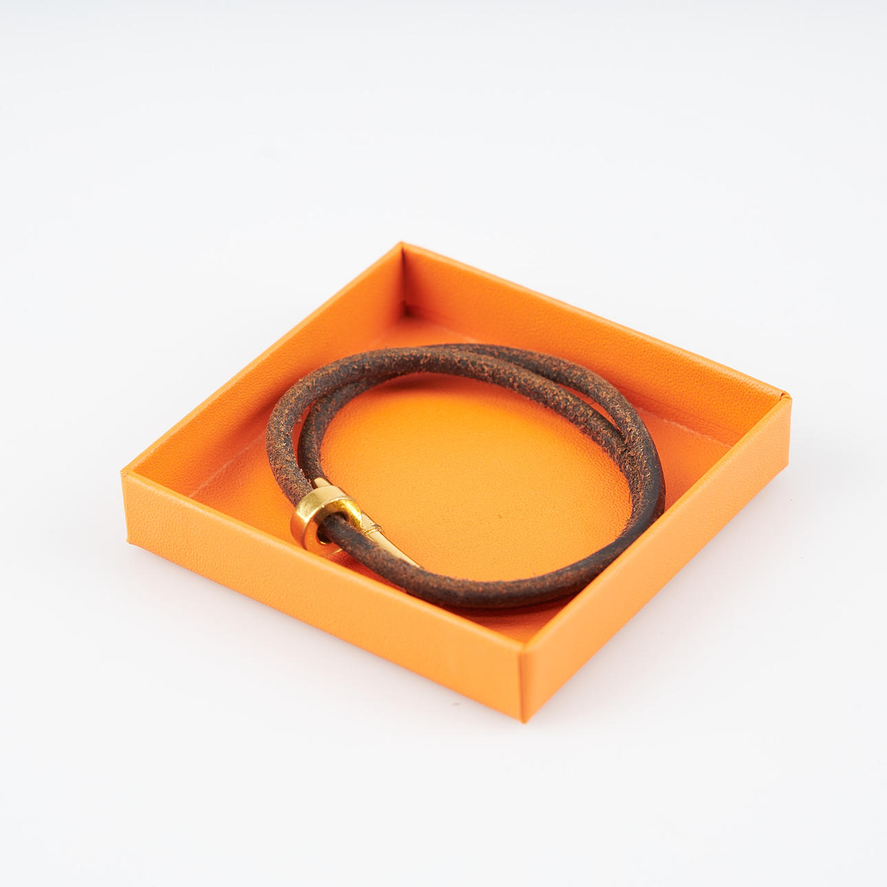 3742729. HERMÈS, armbånd, læder, gul metal.