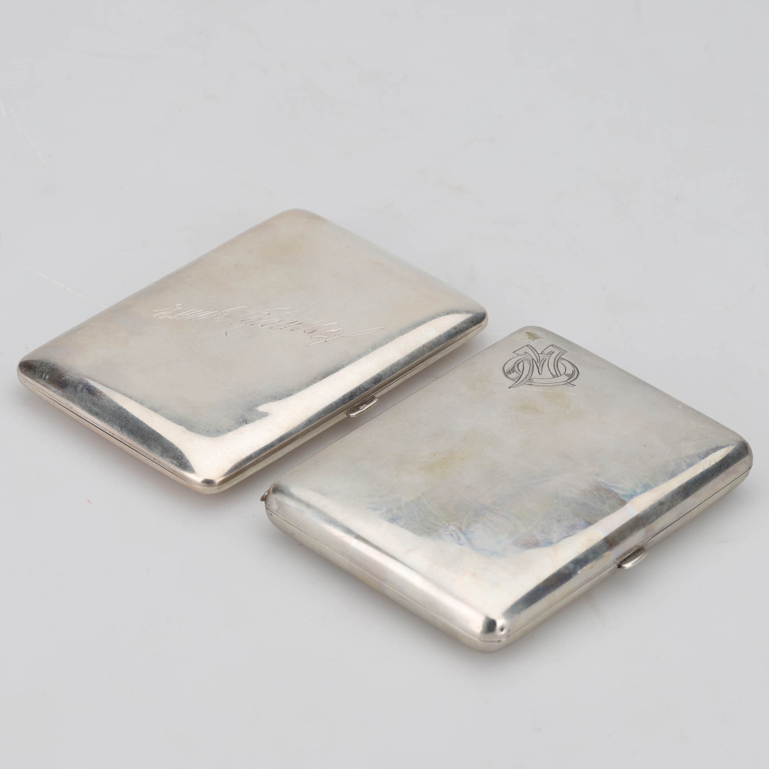 3743696. Cigaretæsker, to stk, sølv, 1940'erne.