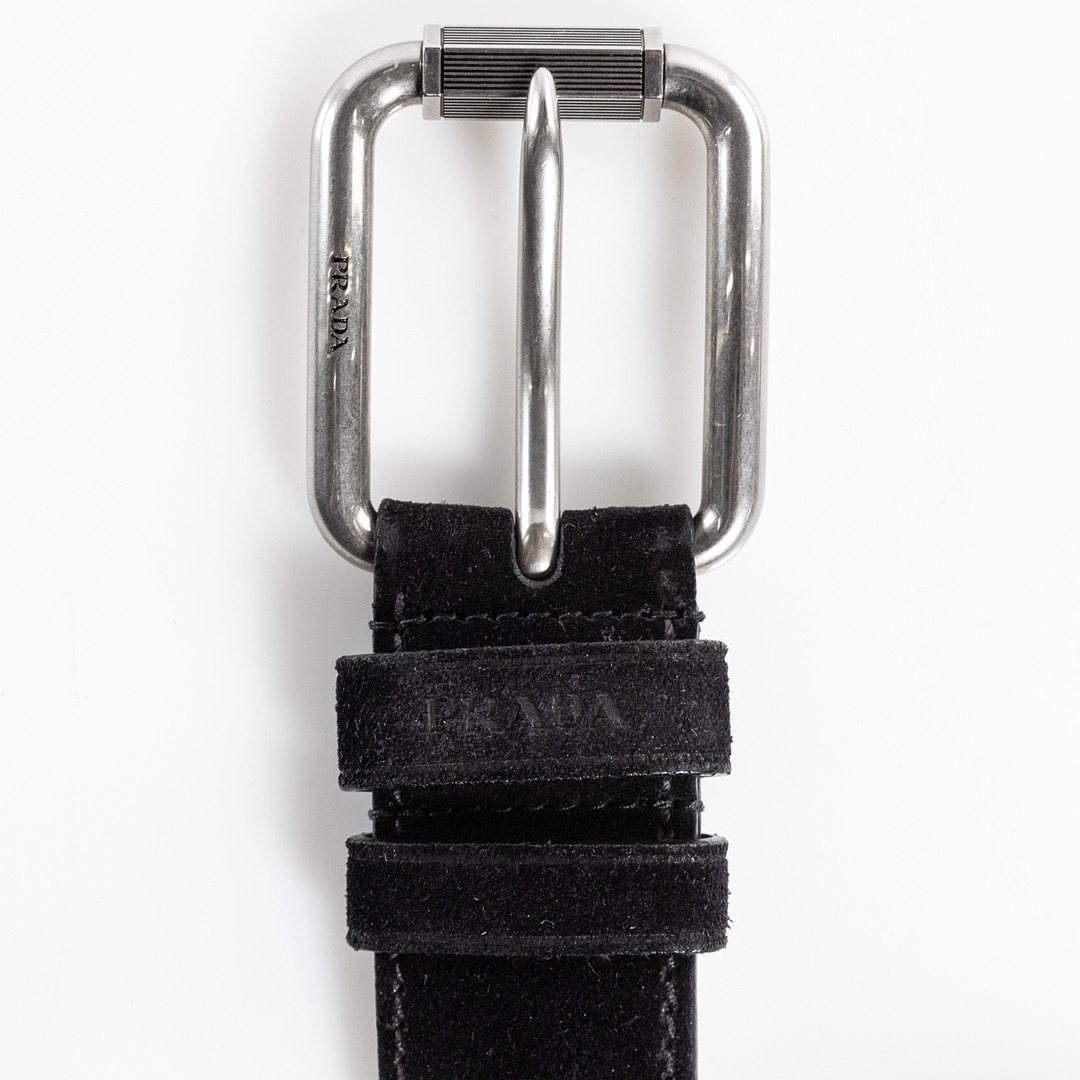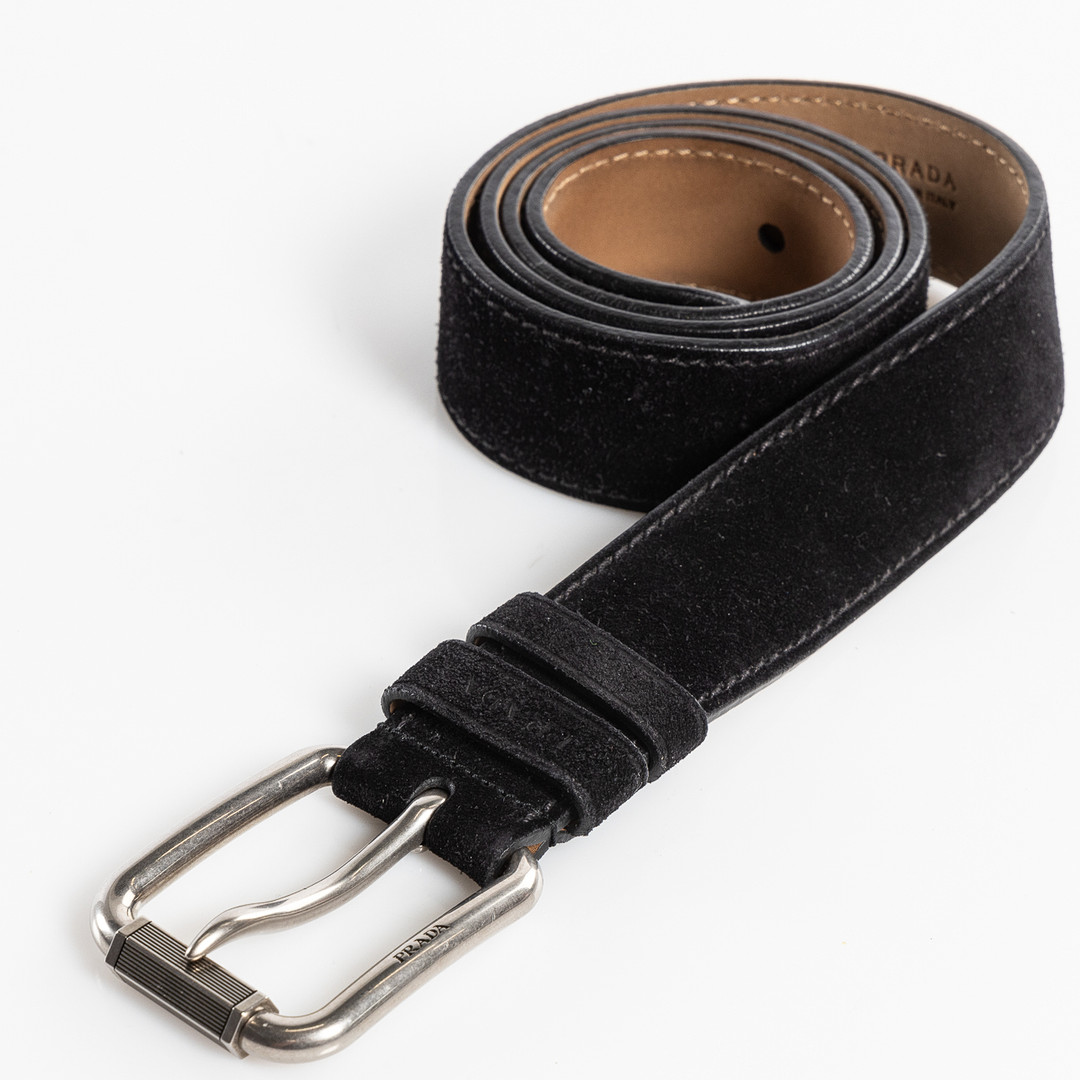 3743959. PRADA, Herrebælte, i sort ruskind.