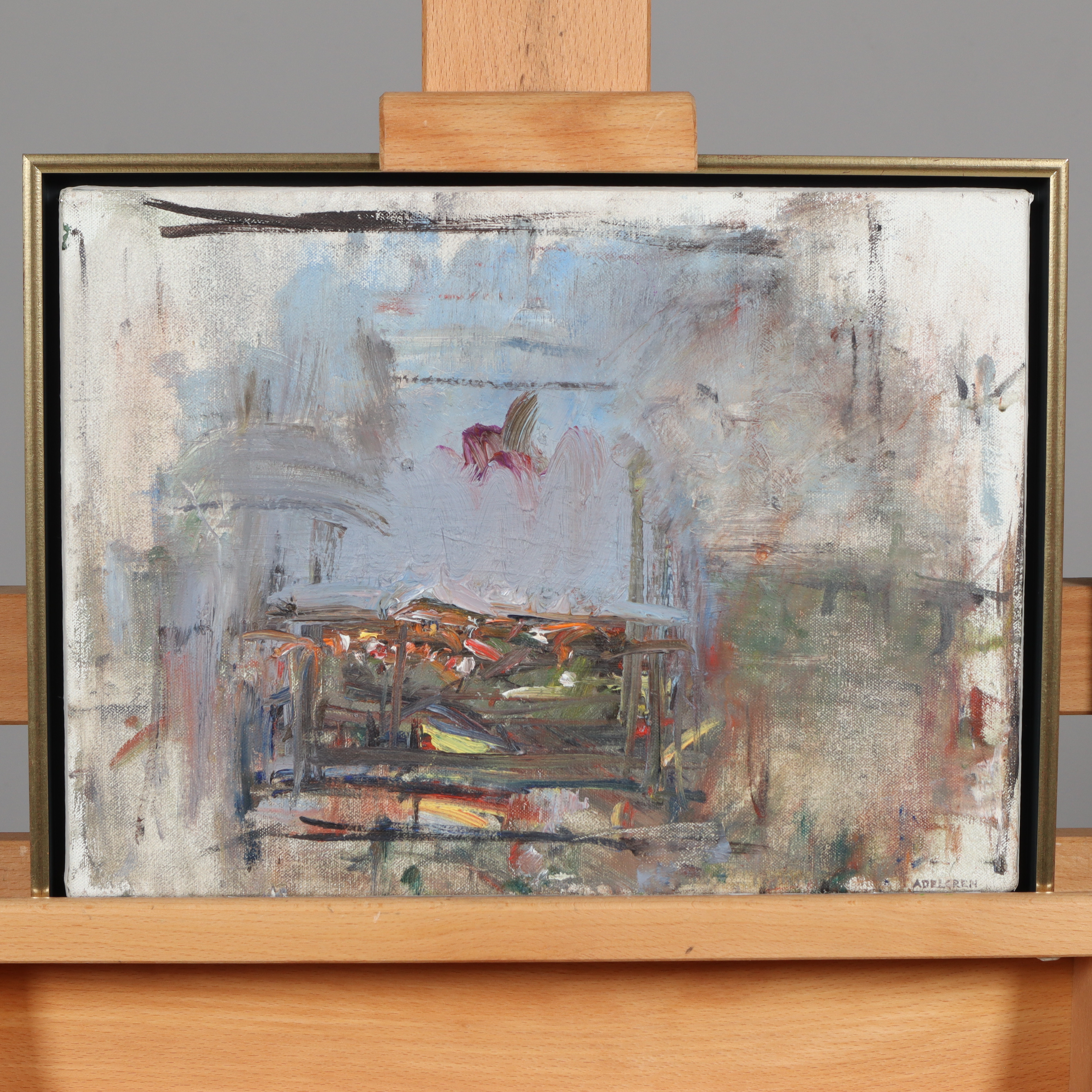 3747312. ANDERS ADELGREN. OLIE PÅ LÆRRED, signeret.