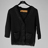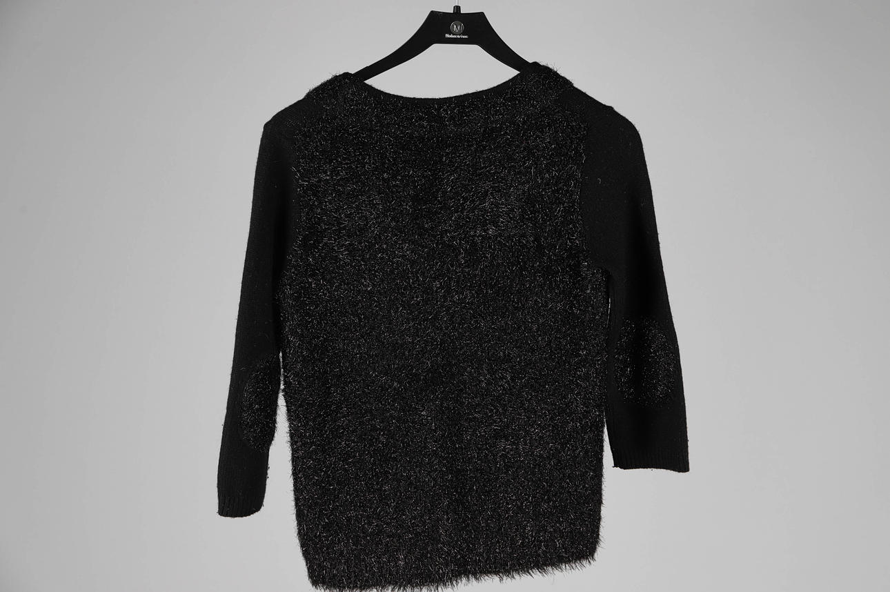 strikket sort cardigan i cashmere, uld og polyester. Knap med trykknapper. Brystbredde ca. 90 cm. Længde ca. 55 cm.